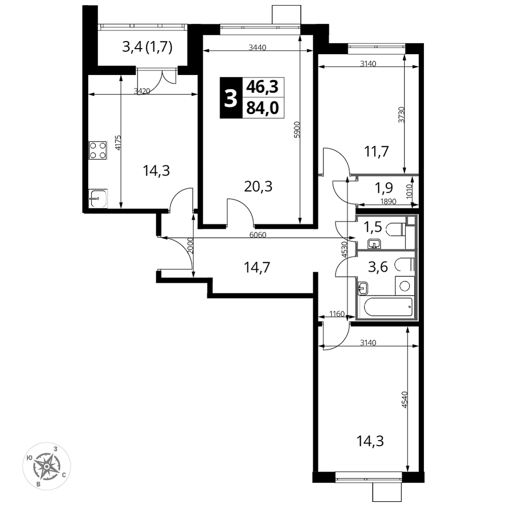 | 3.1 | Декабрь 2023 | 5 | 15 | 4 | 4 | 2 | 59.3 | 17 861 160 | с отделкой | ![]() | 4 | ||