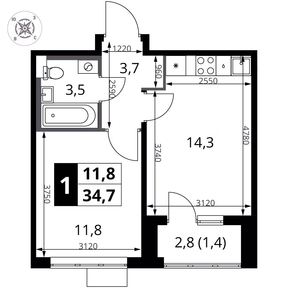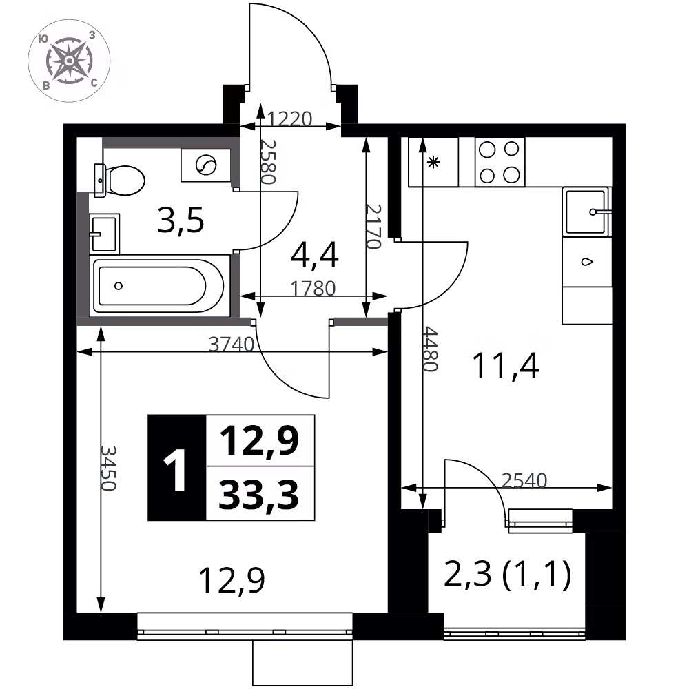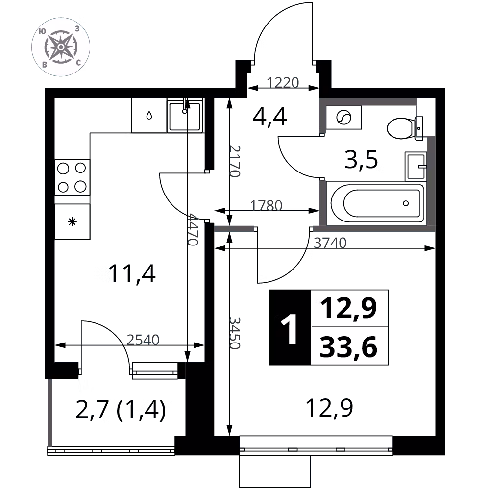 | 3 | Март 2027 | 4 | 12 | 1 | 1 | 1 | 24.8 | 9 344 640 | без отделки | ![]() | 1 | ||