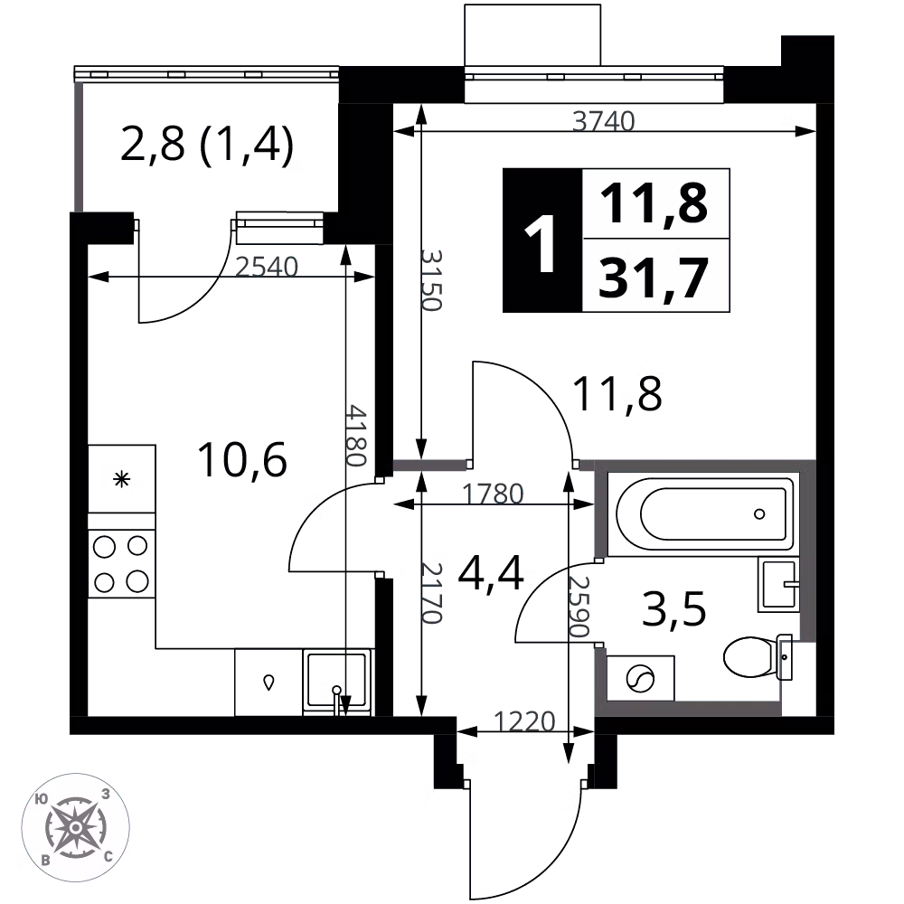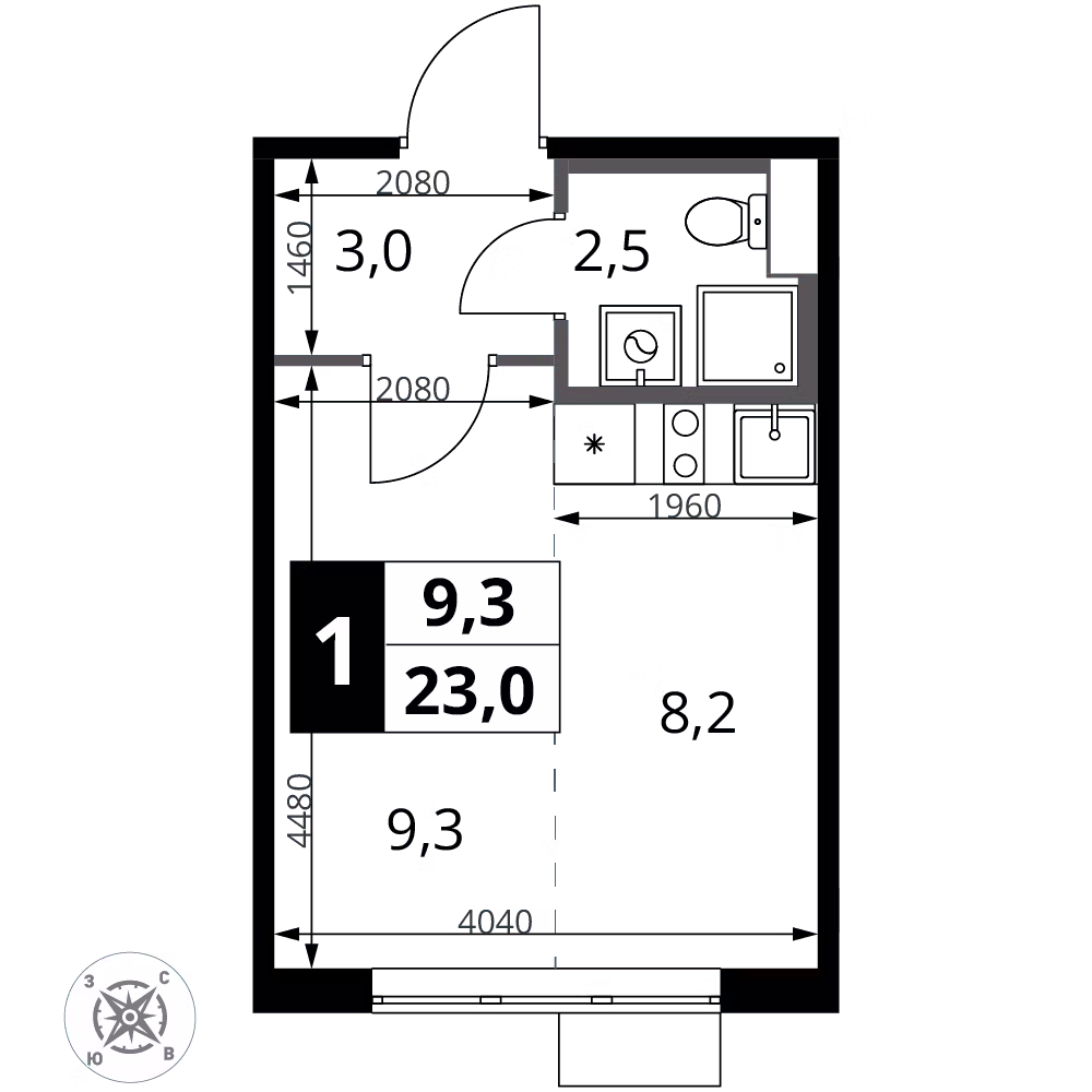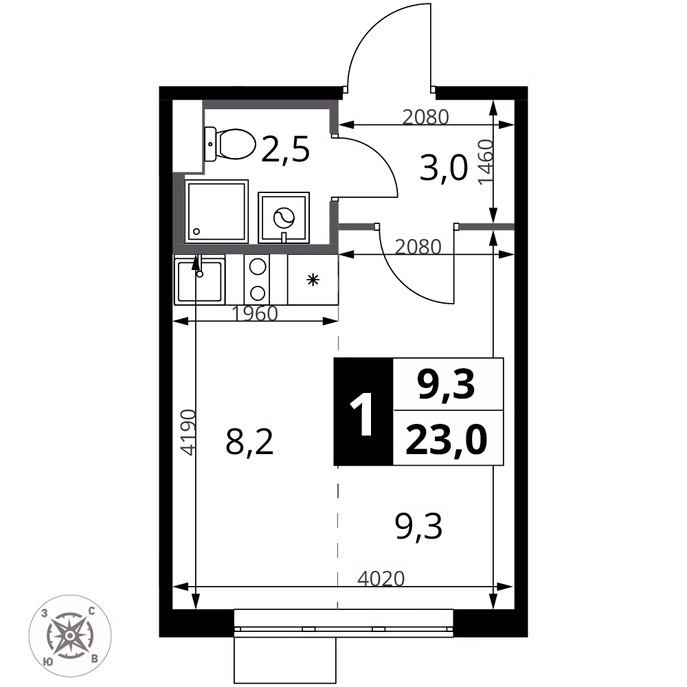 | 3 | Март 2027 | 4 | 4 | 1 | 1 | 1 | 24.8 | 9 208 240 | без отделки | ![]() | 1 | ||
