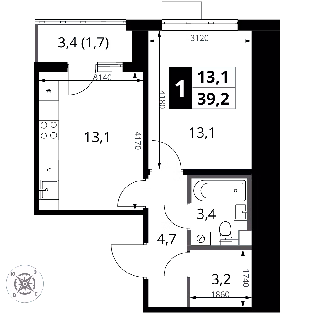 | 3 | Март 2027 | 13 | 17 | 1 | 1 | 2 | 58.1 | 17 395 140 | без отделки | ![]() | 1 | ||