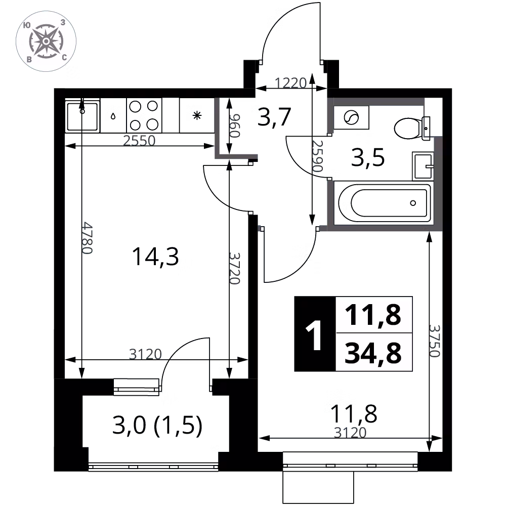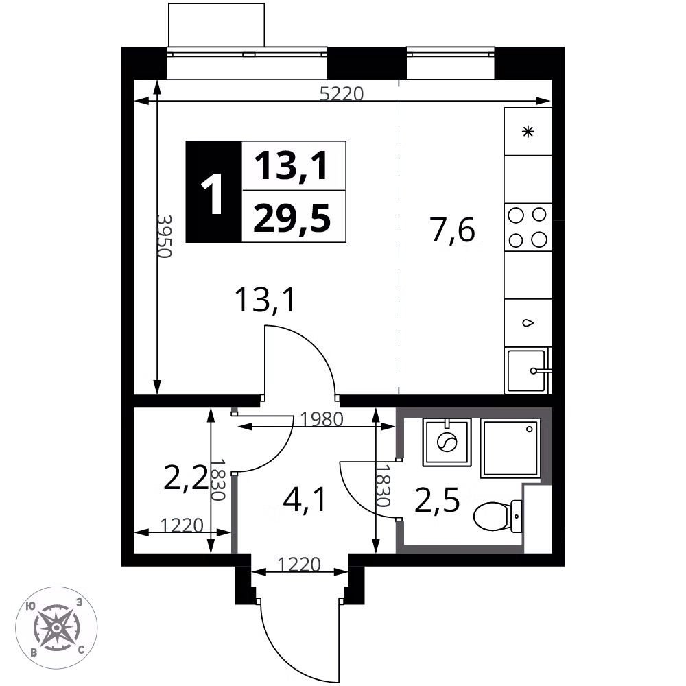 | 3 | Март 2027 | 13 | 15 | 1 | 1 | 2 | 58.1 | 17 220 840 | без отделки | ![]() | 1 | ||