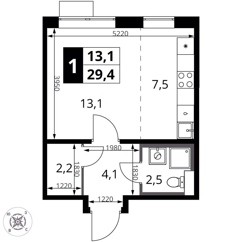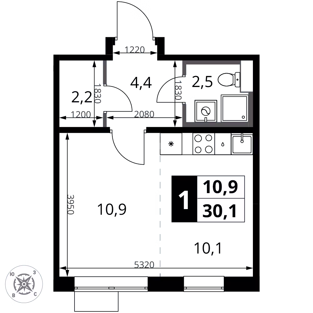| 4 | Март 2027 | 1 | 11 | 11 | 11 | 1 | 22.1 | 9 122 880 | с отделкой | ![]() | 11 | ||