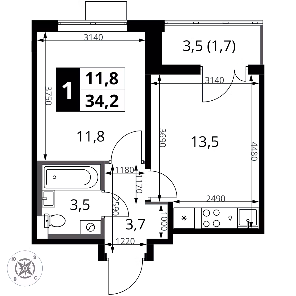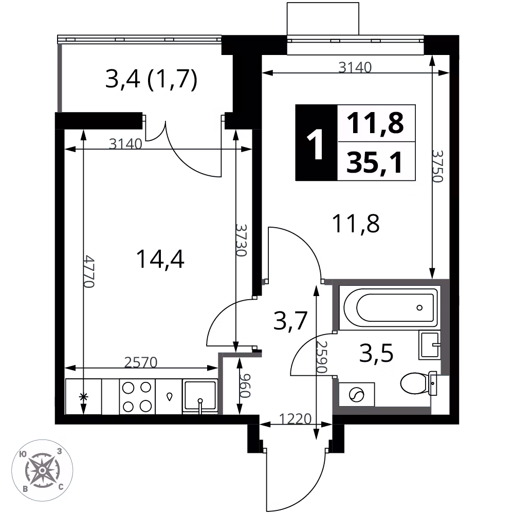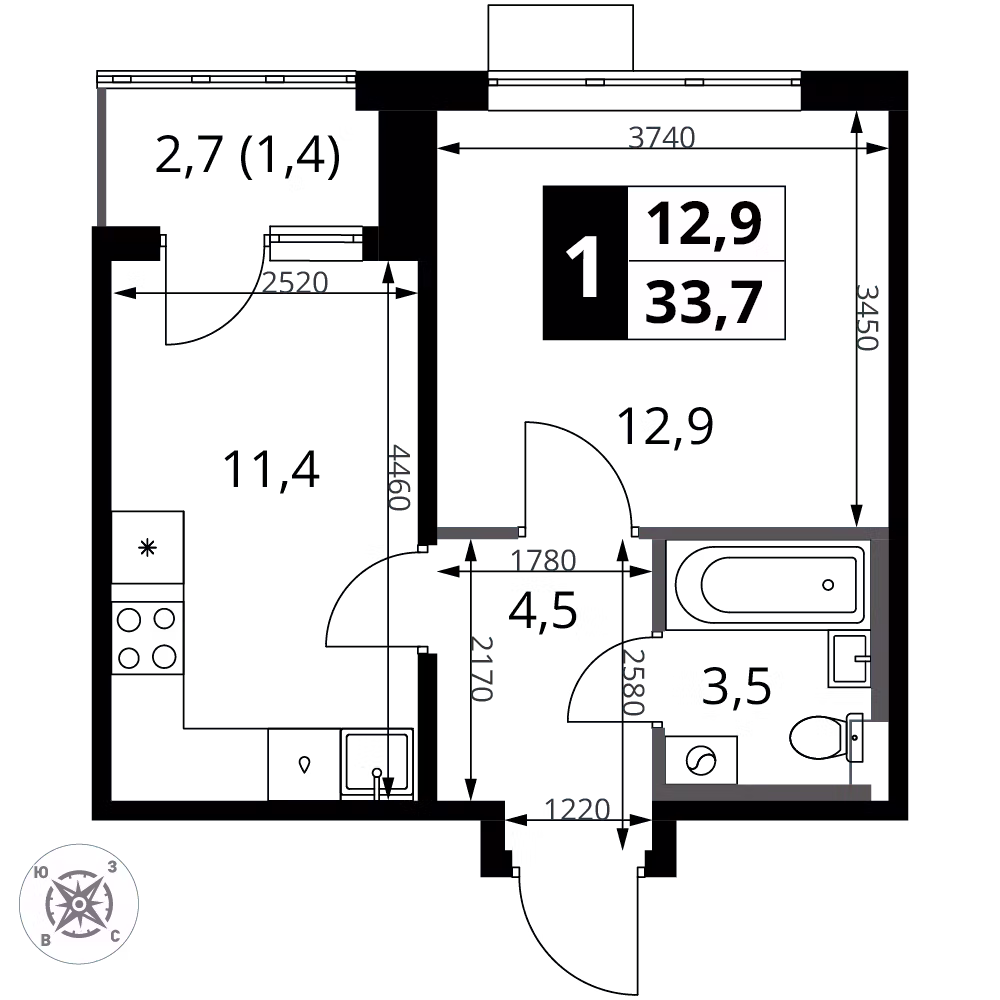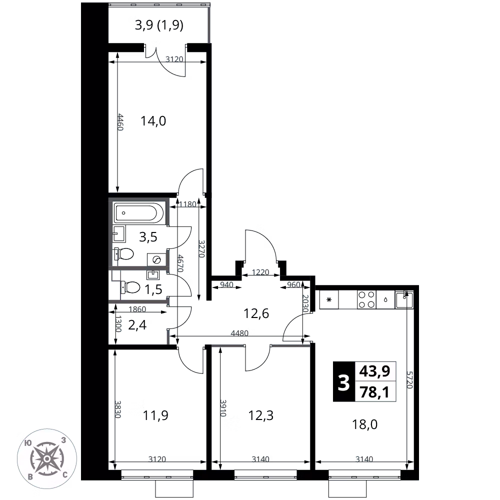 | 3 | Март 2027 | 12 | 9 | 1 | 1 | 3 | 67.2 | 17 713 920 | без отделки | ![]() | 1 | ||