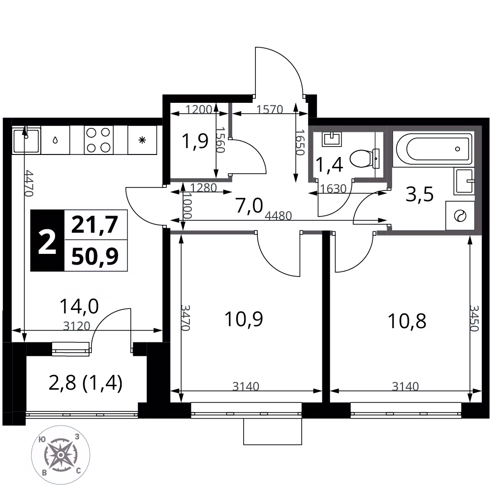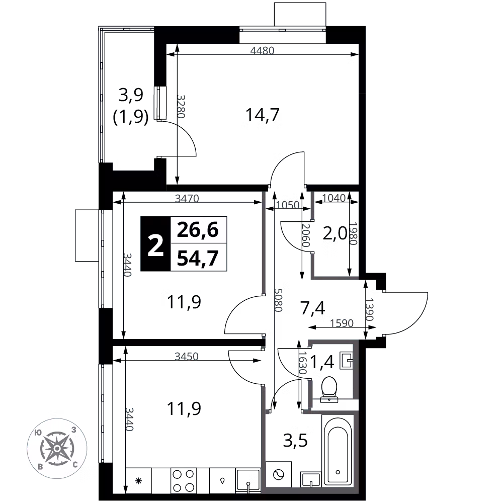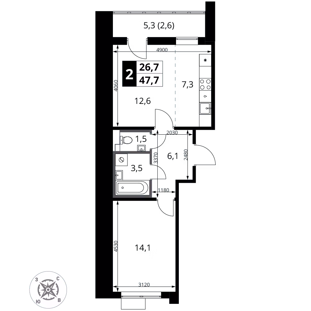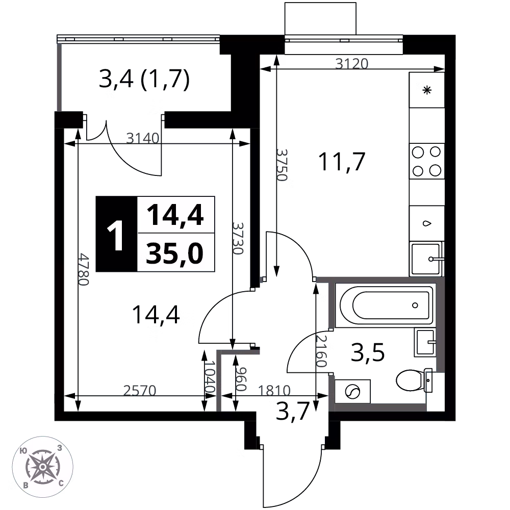 | 3 | Март 2027 | 14 | 7 | 2 | 2 | 1 | 19.3 | 7 779 830 | без отделки | ![]() | 2 | ||