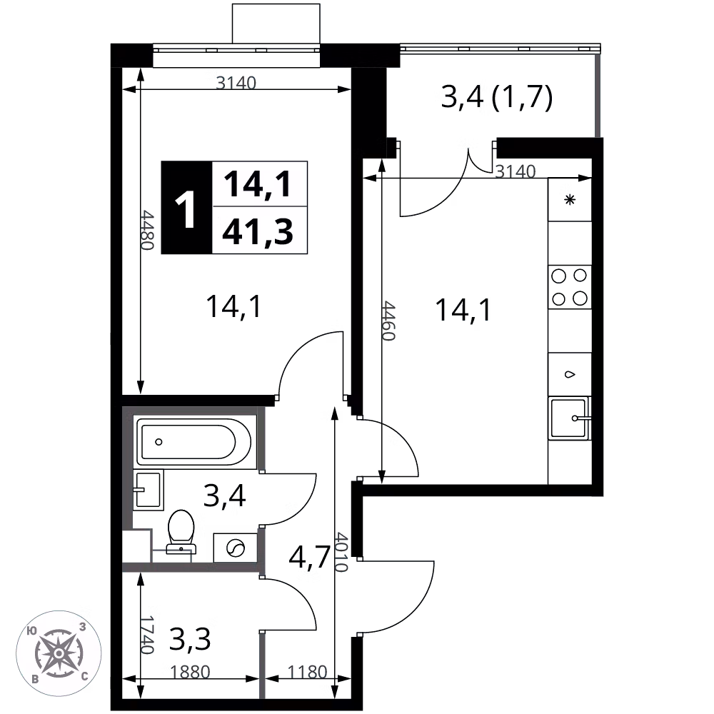 | 3 | Март 2027 | 14 | 10 | 3 | 3 | 1 | 19.3 | 7 808 780 | без отделки | ![]() | 3 | ||