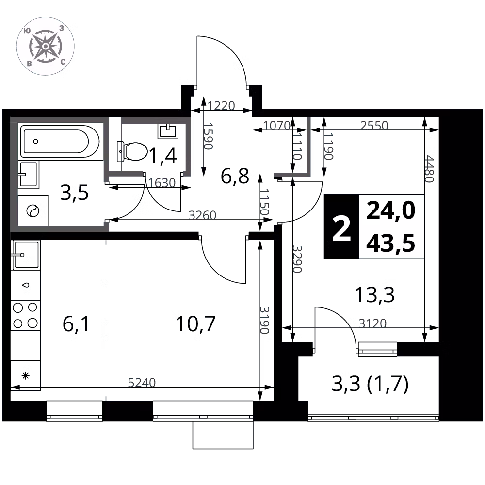 | 3 | Март 2027 | 9 | 17 | 2 | 2 | 1 | 24.2 | 9 118 560 | без отделки | ![]() | 2 | ||