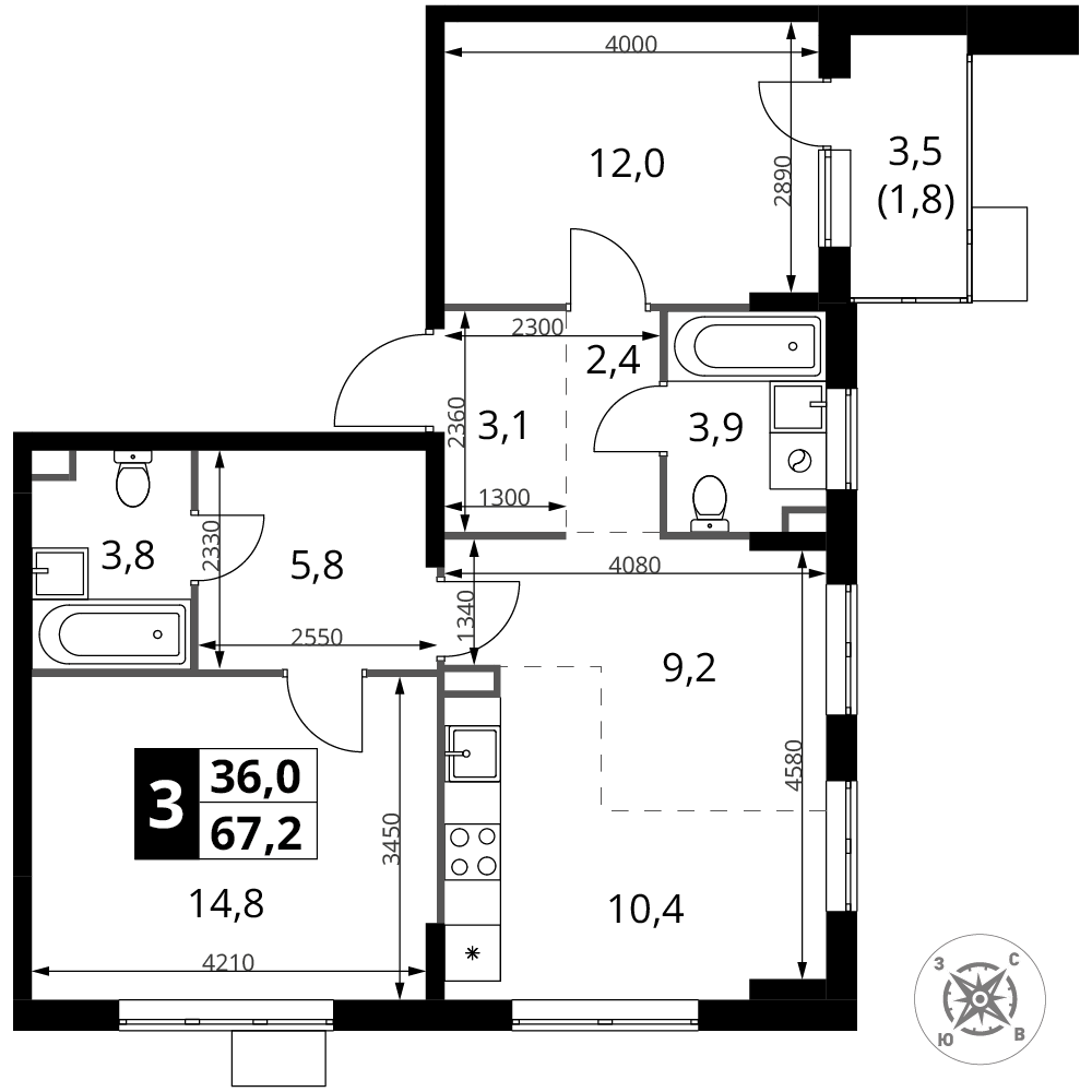 | 3 | Март 2027 | 12 | 4 | 1 | 1 | 3 | 67.2 | 17 545 920 | без отделки | ![]() | 1 | ||