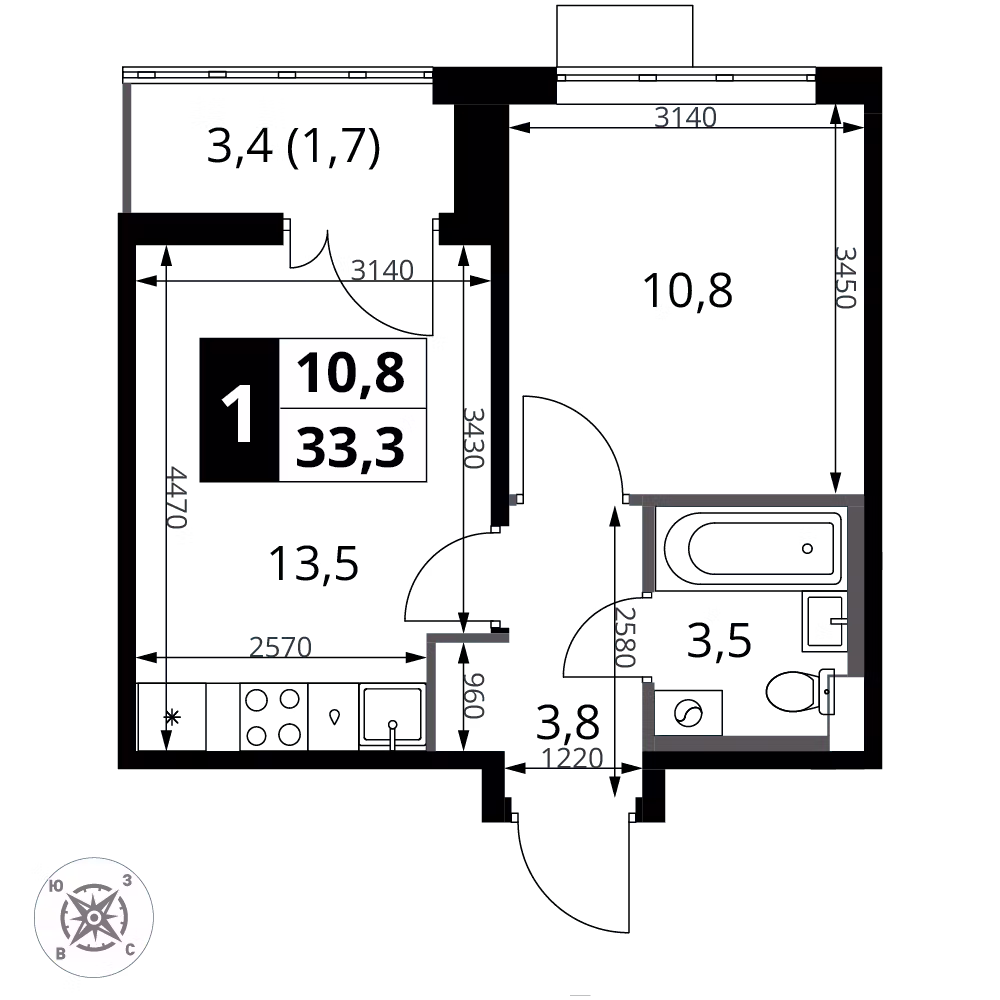 | 3 | Март 2027 | 13 | 8 | 1 | 1 | 2 | 58.1 | 17 017 490 | без отделки | ![]() | 1 | ||