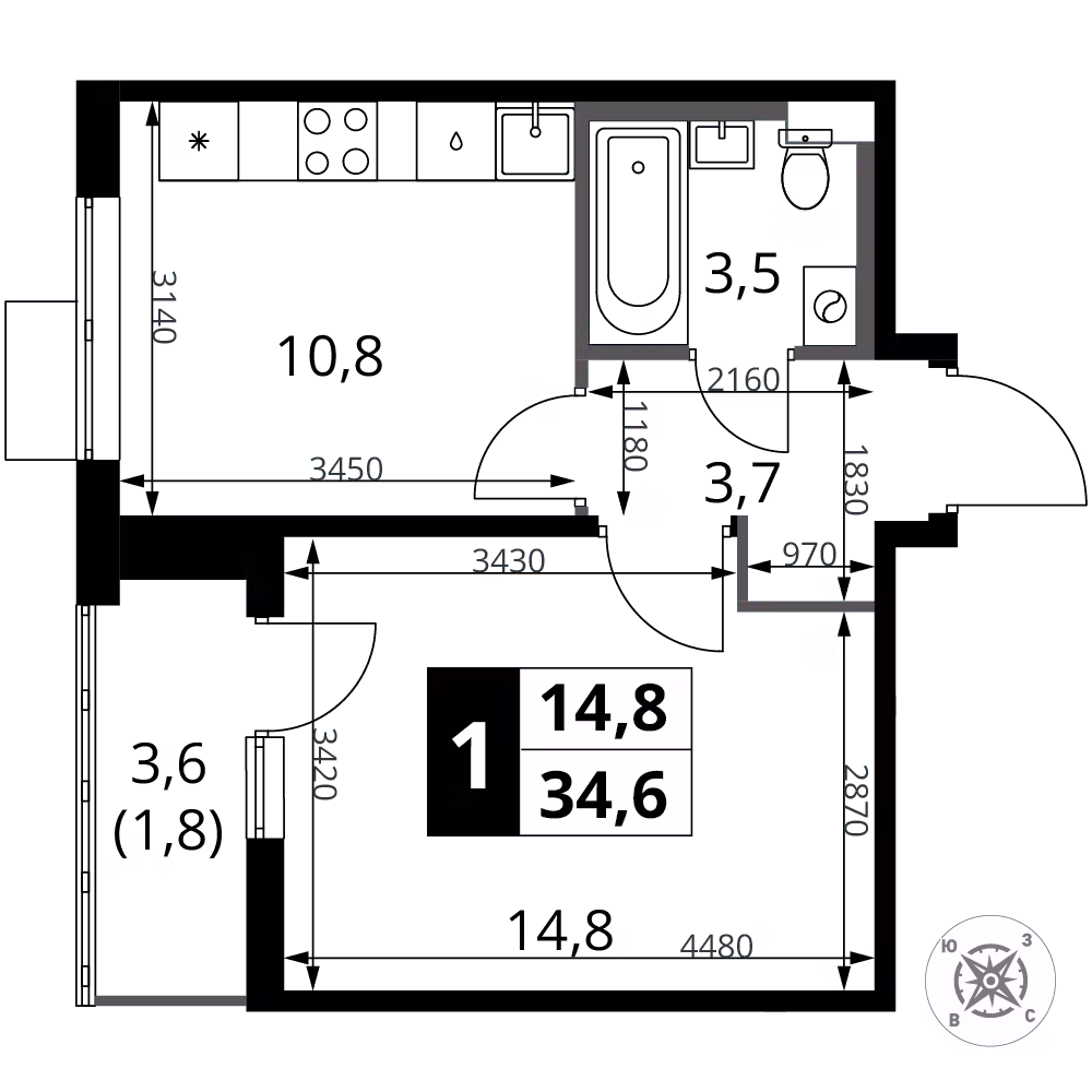 | 3 | Март 2027 | 4 | 3 | 1 | 1 | 1 | 24.8 | 9 183 440 | без отделки | ![]() | 1 | ||