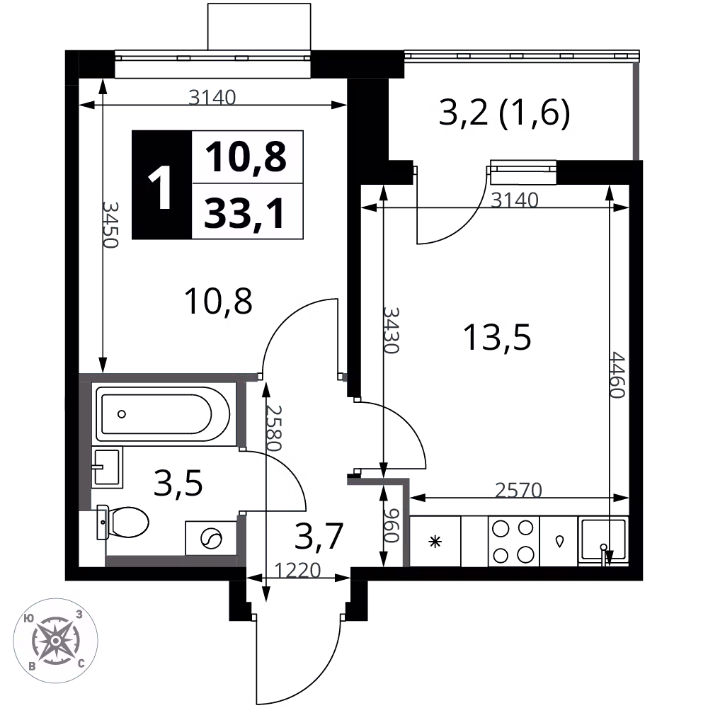 | 3 | Март 2027 | 3 | 15 | 1 | 1 | 2 | 58.1 | 17 220 840 | без отделки | ![]() | 1 | ||