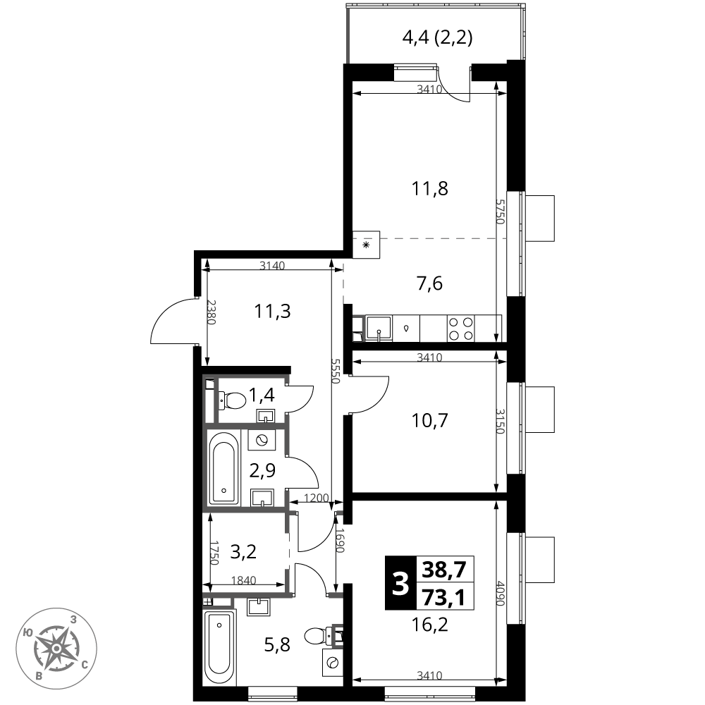 | 3 | Май 2027 | 3 | 11 | 4 | 4 | 1 | 28.6 | 7 181 460 | с отделкой |  | 4 | ||