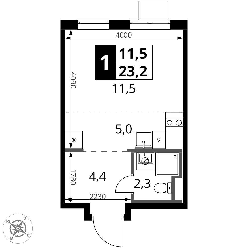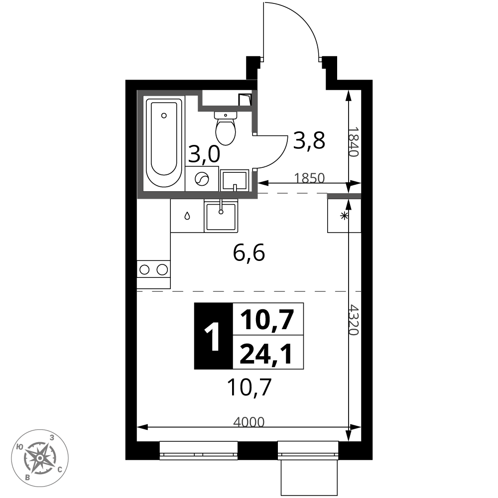 Продажа 1-комнатной квартиры № 6, 23.2 кв.м, этаж 16/24 в ЖК "1-й Донской"