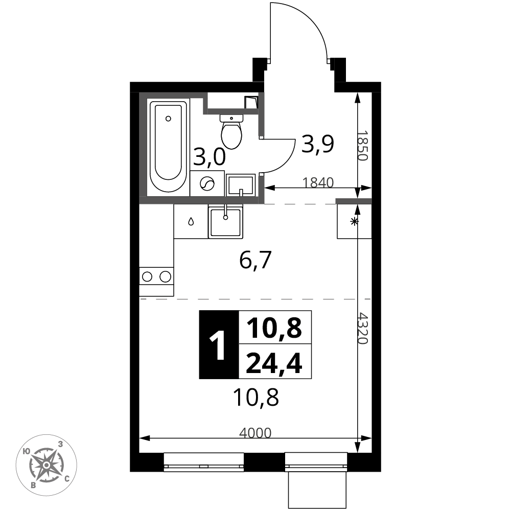 24.4 м² · 1 комната · 15/24 этаж · Декабрь 2026