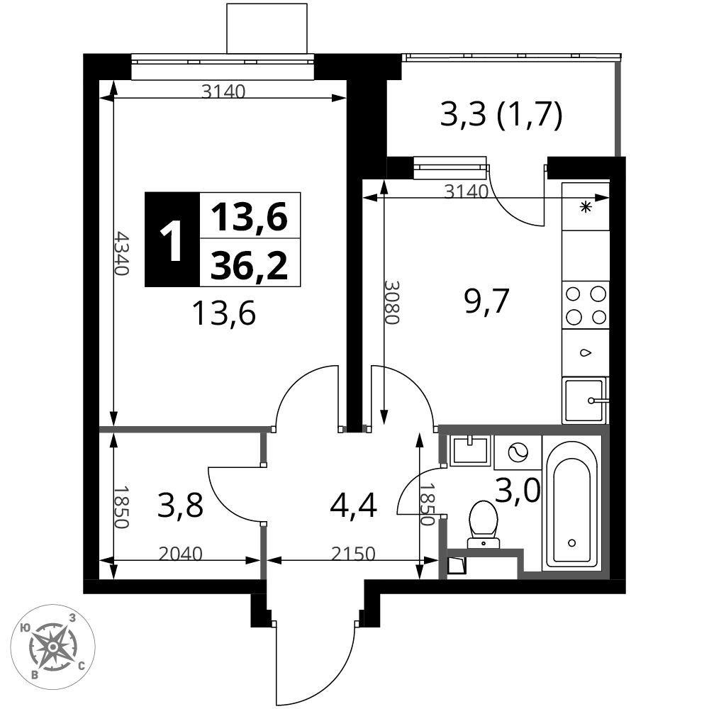 ГлавнаяЖилая недвижимостьЖК "1-й Донской"1-комнатная квартира № 4