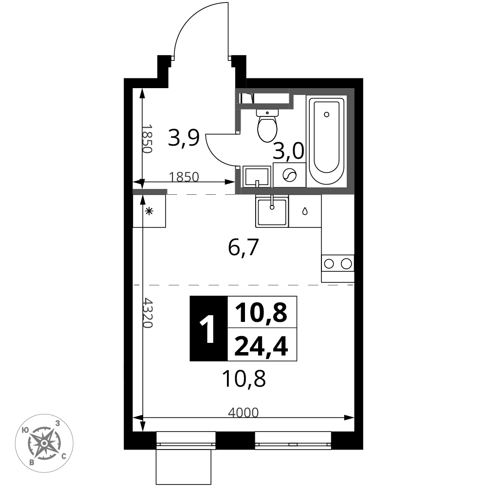 24.4 м² · 1 комната · 15/24 этаж · Декабрь 2026