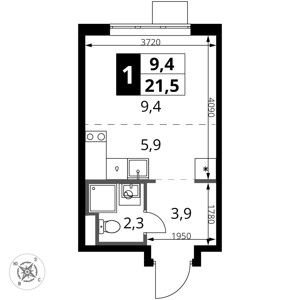 Продажа 1-комнатной квартиры № 4, 21.5 кв.м, этаж 16/24 в ЖК "1-й Донской"