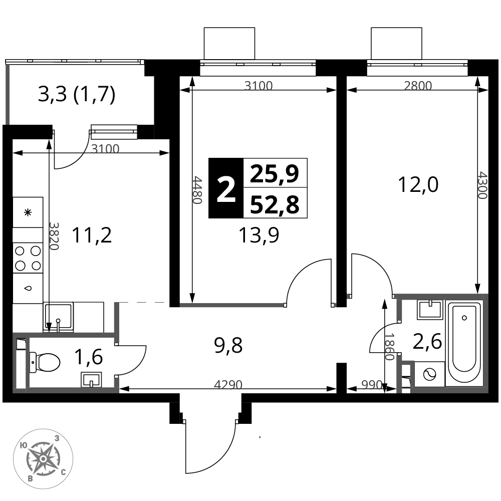 ГлавнаяЖилая недвижимостьЖК "1-й Донской"2-комнатная квартира № 9