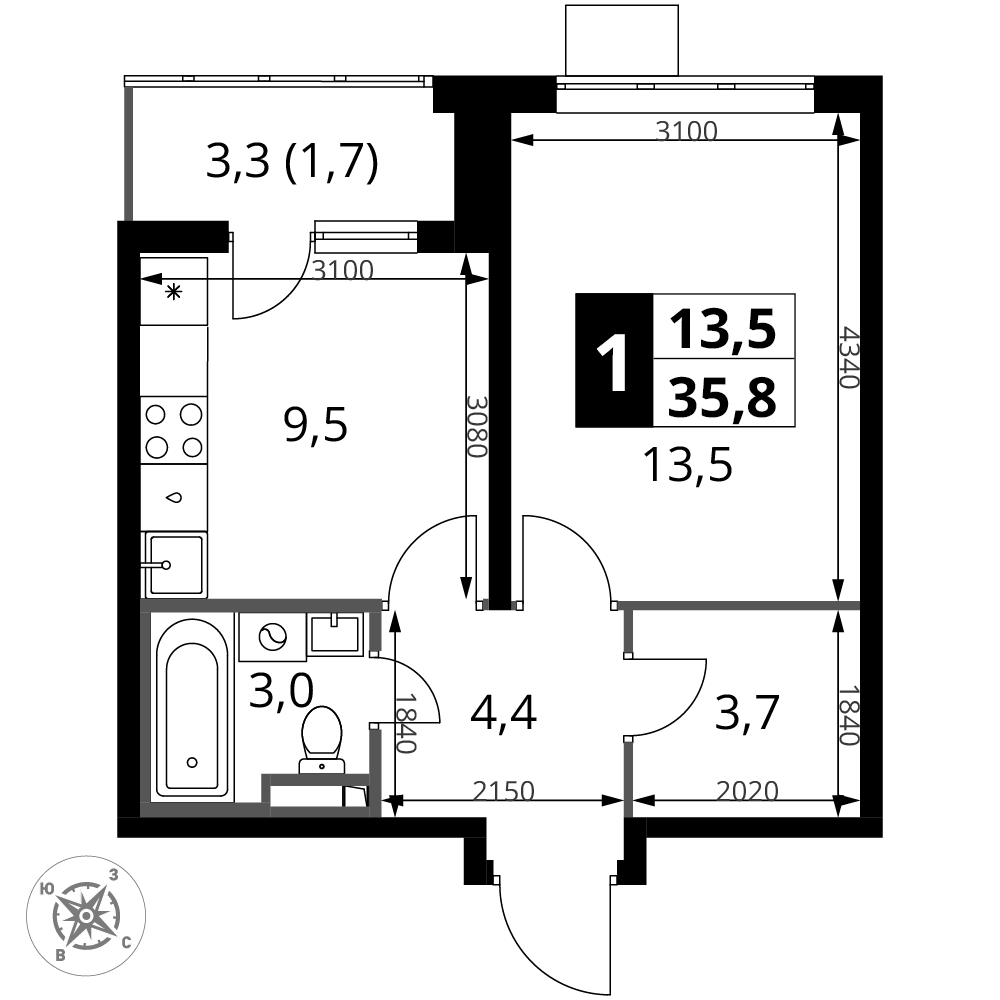 ГлавнаяЖилая недвижимостьЖК "1-й Донской"1-комнатная квартира № 5