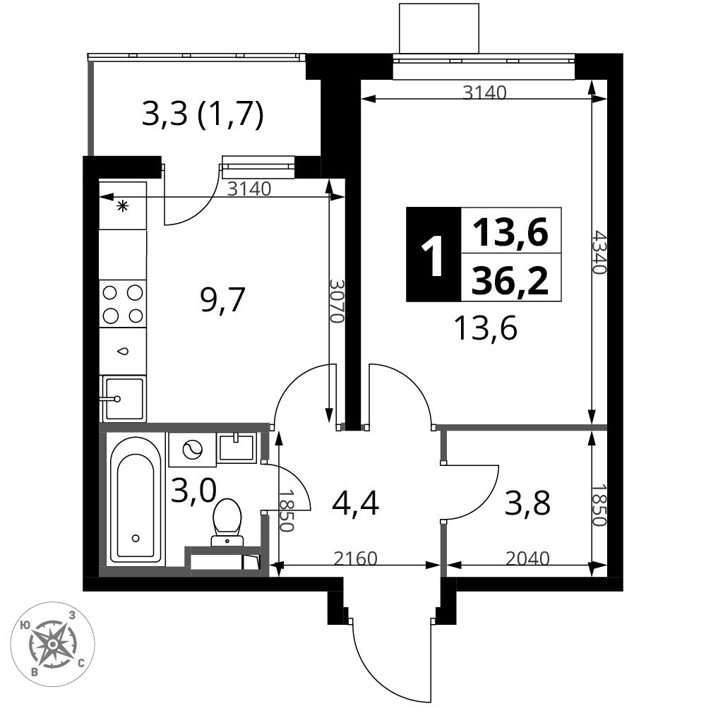 ГлавнаяЖилая недвижимостьЖК "1-й Донской"1-комнатная квартира № 5