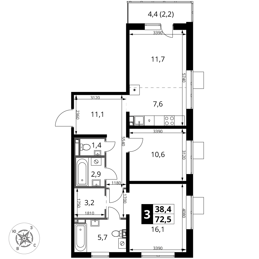 ГлавнаяЖилая недвижимостьЖК "1-й Донской"3-комнатная квартира № 9