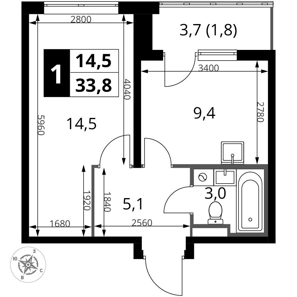 Продажа 1-комнатной квартиры № 8, 33.8 кв.м, этаж 2/24 в ЖК "1-й Донской"