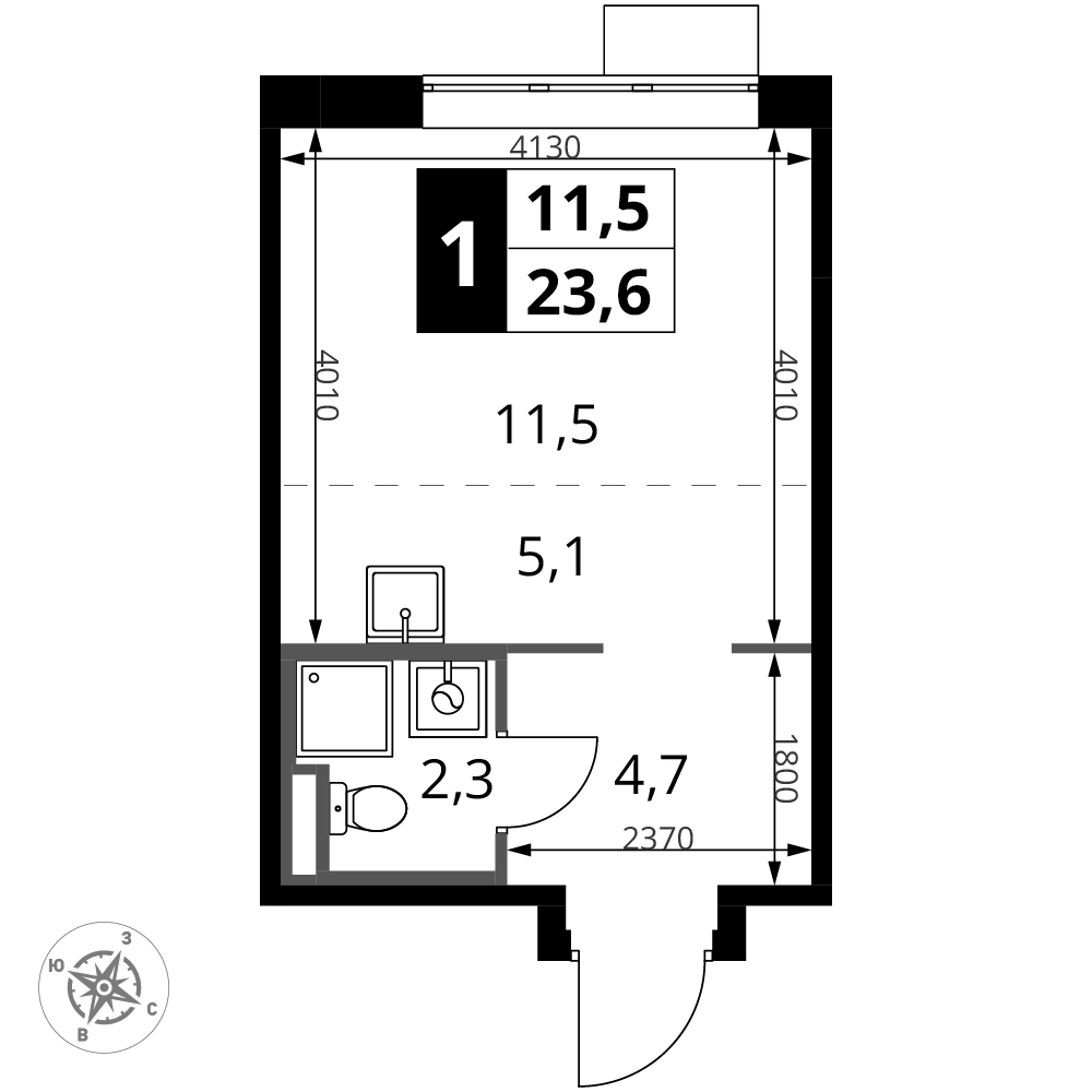 23.6 м² · 1 комната · 18/24 этаж · Май 2027