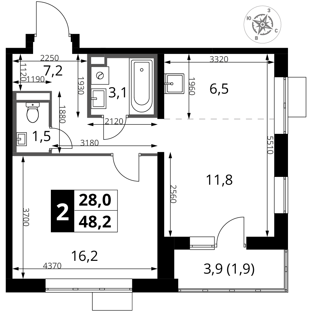 Продажа 2-комнатной квартиры № 3, 48.2 кв.м, этаж 7/24 в ЖК "1-й Донской"