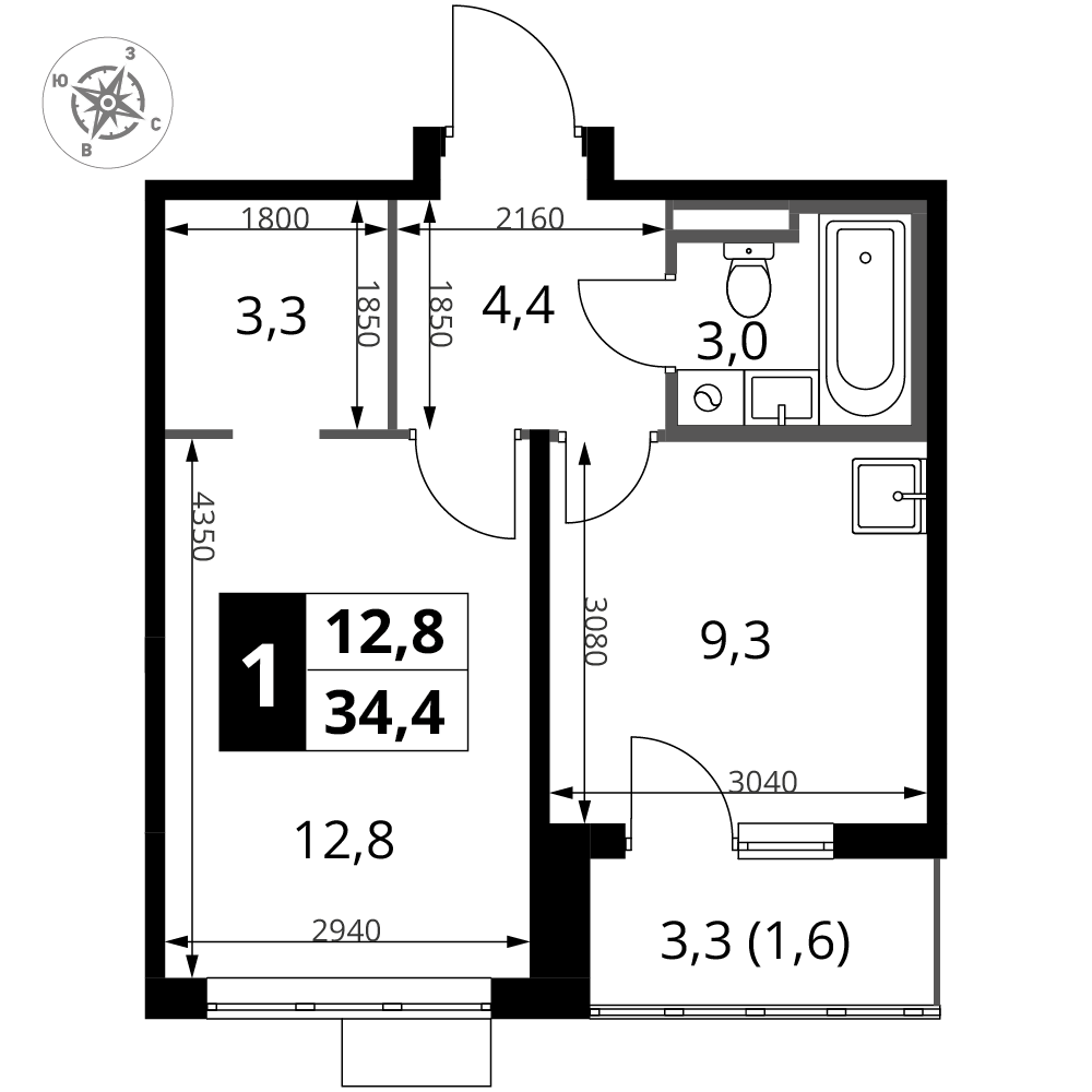 Продажа 1-комнатной квартиры № 8, 34.4 кв.м, этаж 22/24 в ЖК "1-й Донской"
