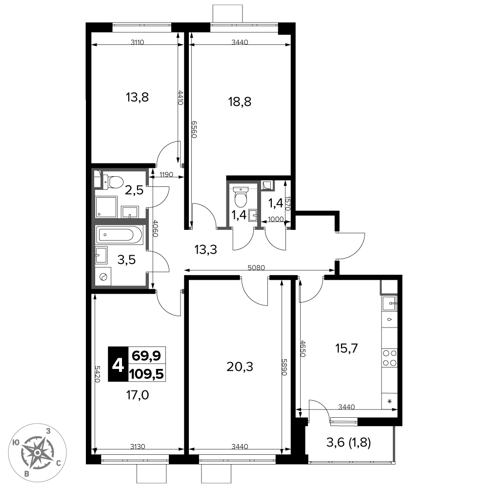 ГлавнаяЖилая недвижимостьЖК "1-й Донской"4-комнатная квартира № 5