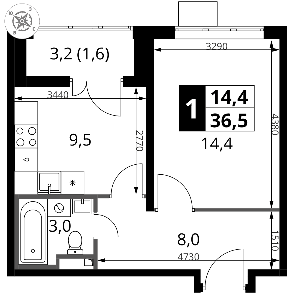 ГлавнаяЖилая недвижимостьЖК "1-й Донской"1-комнатная квартира № 3
