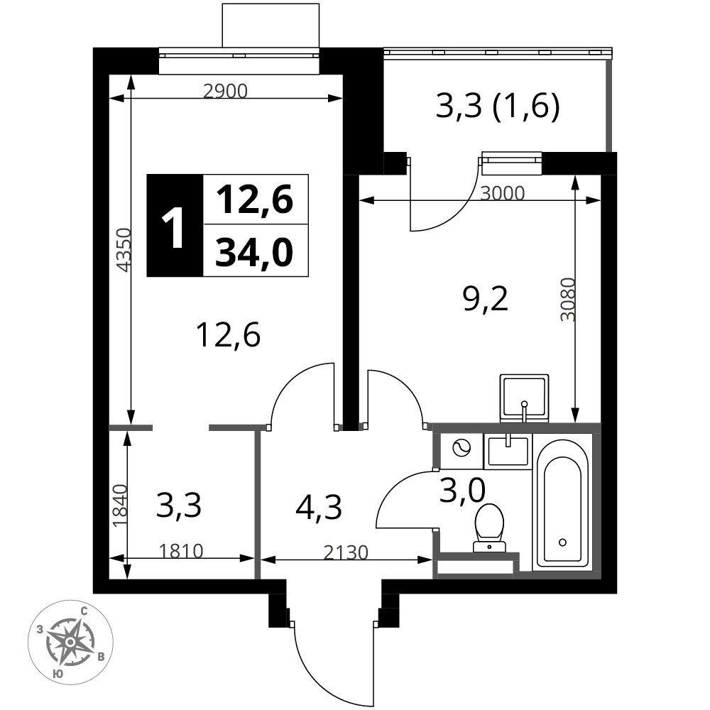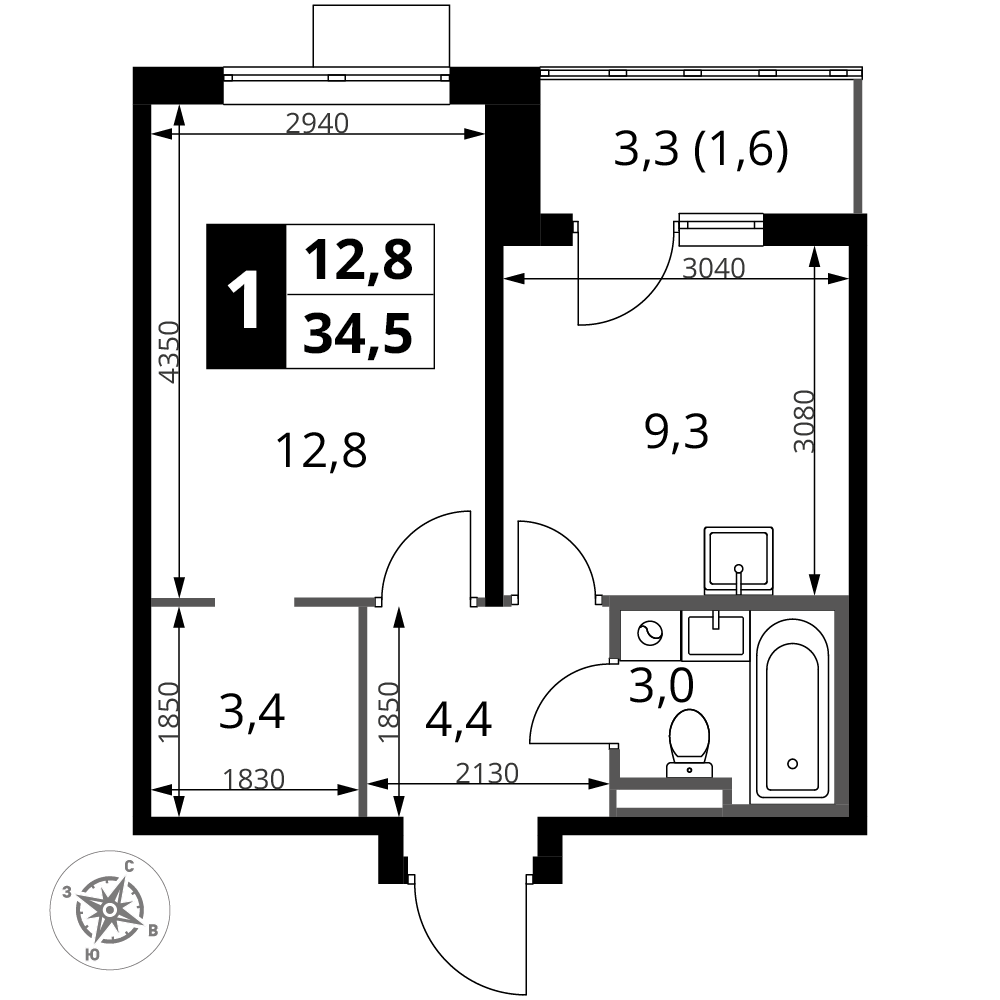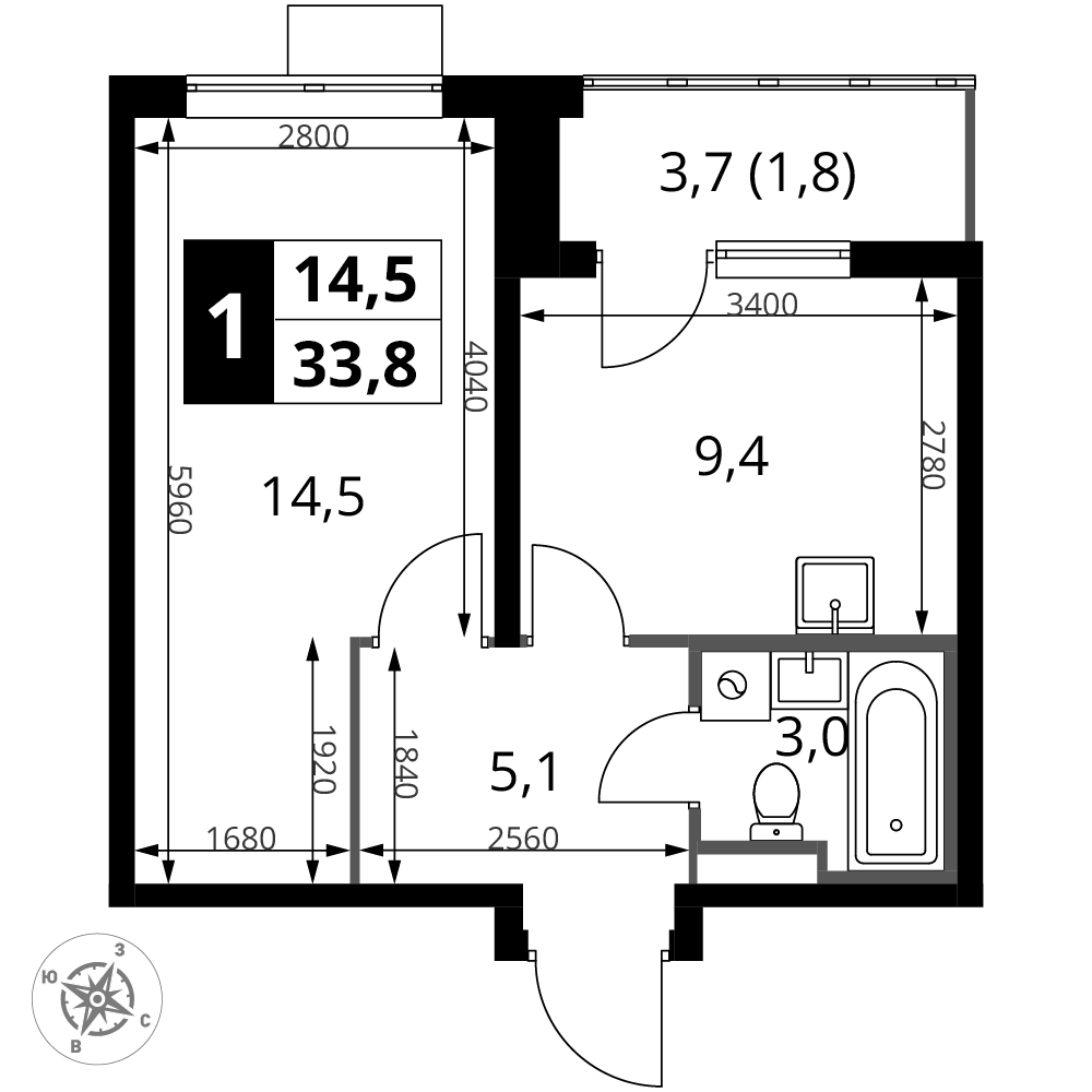 ГлавнаяЖилая недвижимостьЖК "1-й Донской"1-комнатная квартира № 3