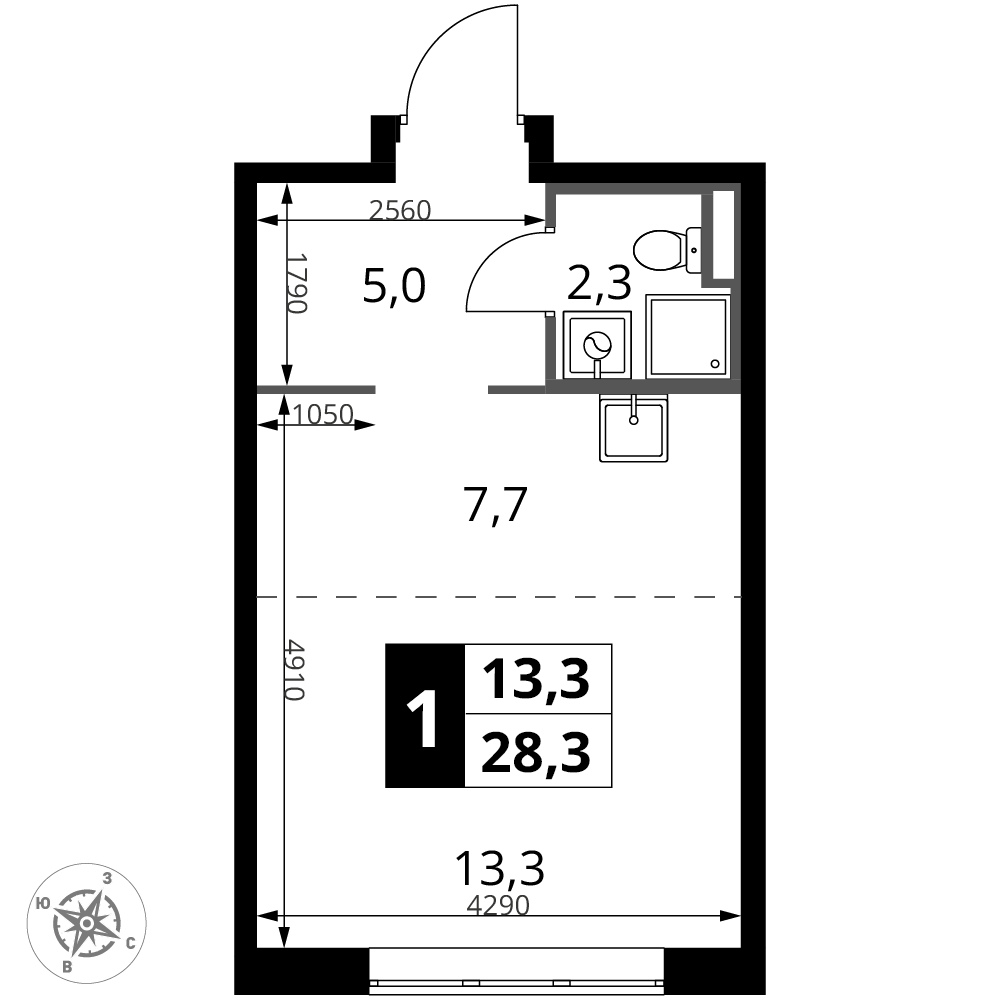 23.3 м² · 1 комната · 7/24 этаж · Май 2027