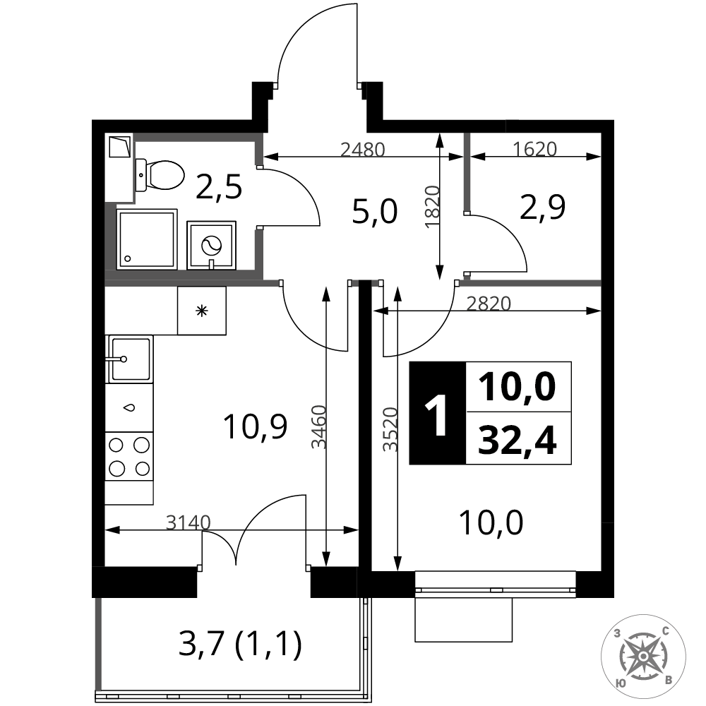 | 4 | Март 2027 | 7 | 10 | 1 | 1 | 3 | 62.9 | 19 524 160 | с отделкой | ![]() | 1 | ||