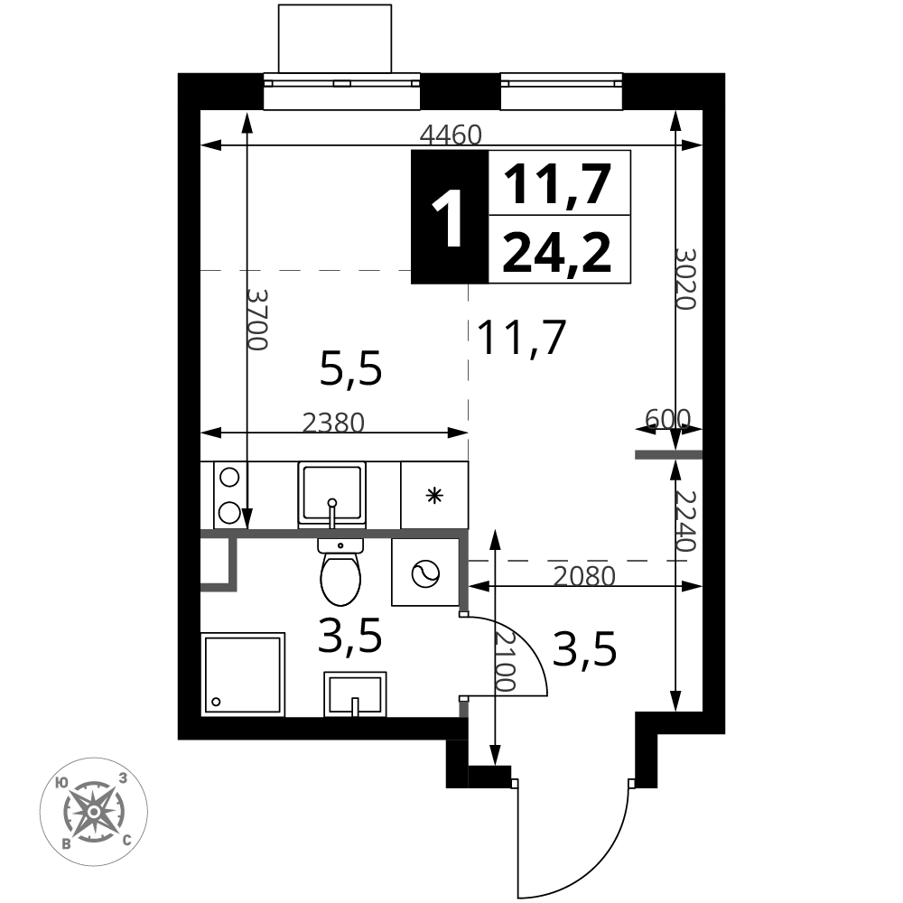 23.8 м² · 1 комната · 2/17 этаж · Март 2027