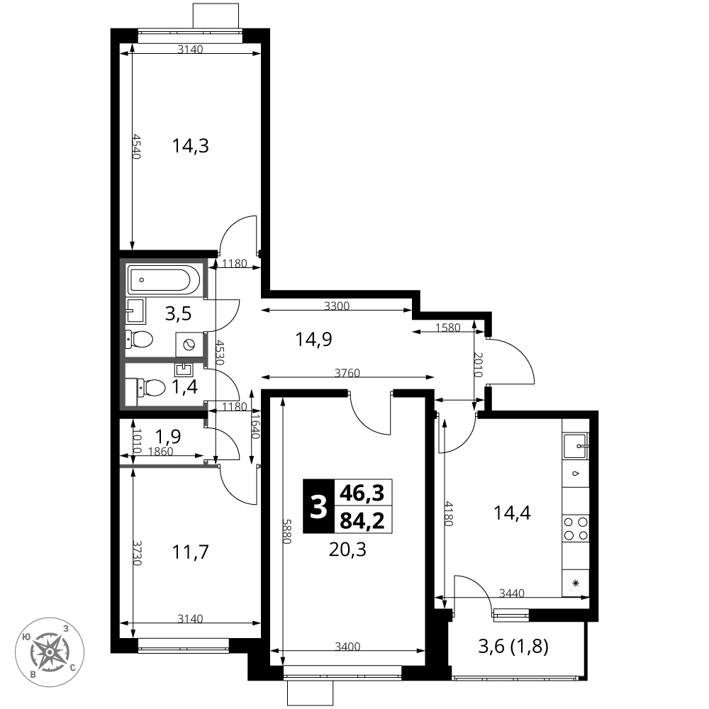 | 3 | Март 2027 | 14 | 8 | 3 | 3 | 1 | 19.3 | 7 229 780 | без отделки | ![]() | 3 | ||