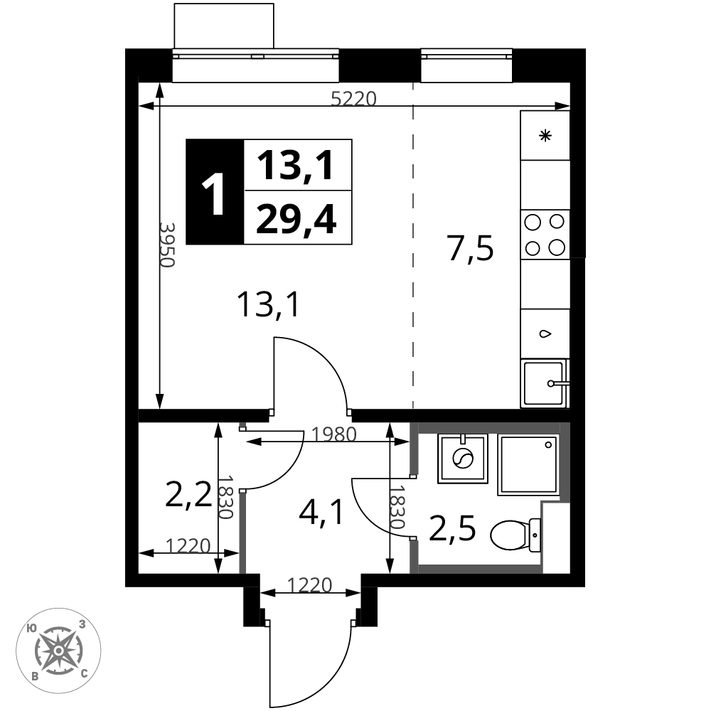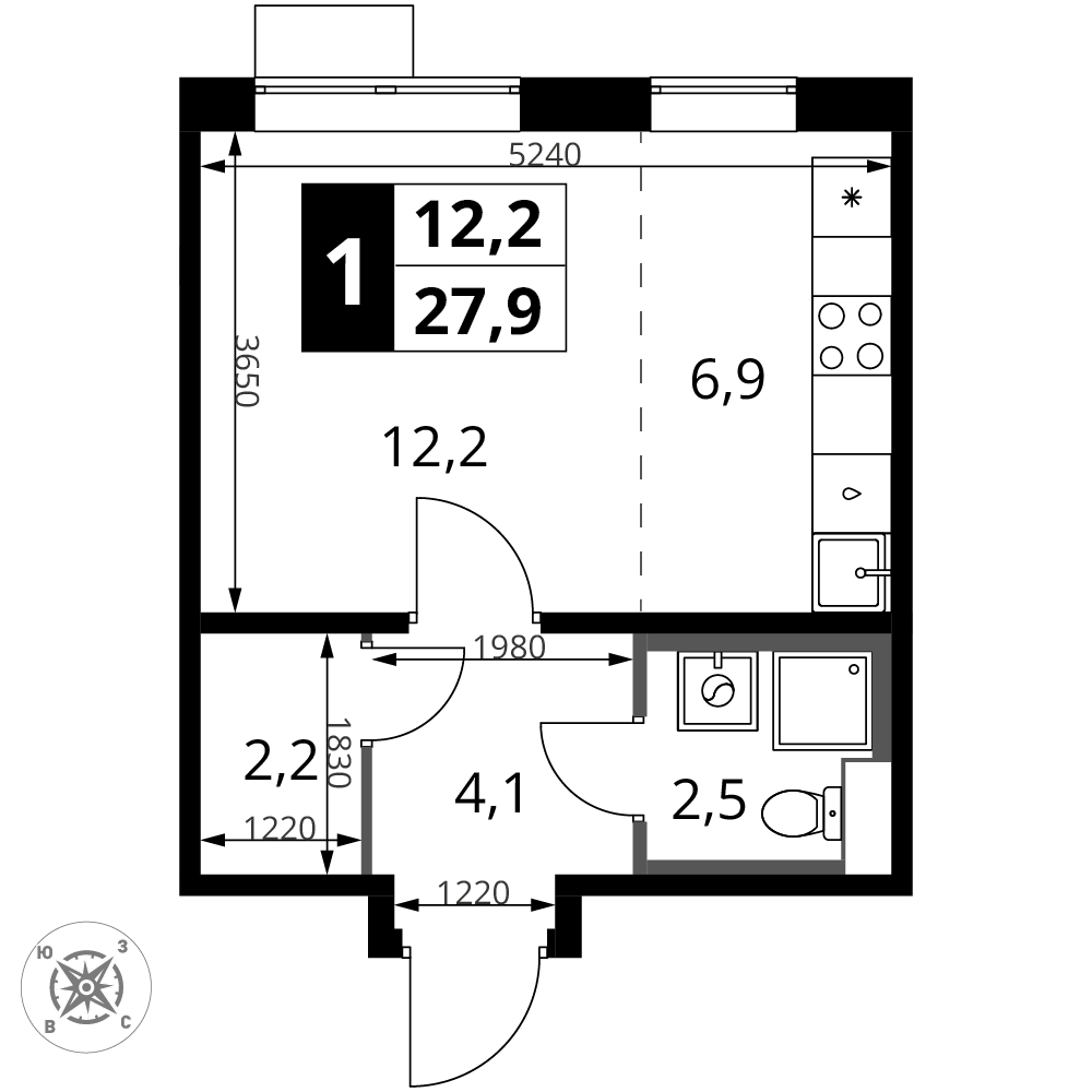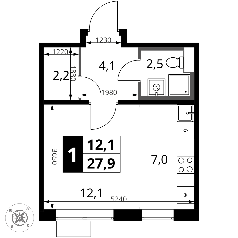 Продажа 1-комнатной квартиры № 4, 27.9 кв.м, этаж 13/16 в ЖК "1-й Шереметьевский"