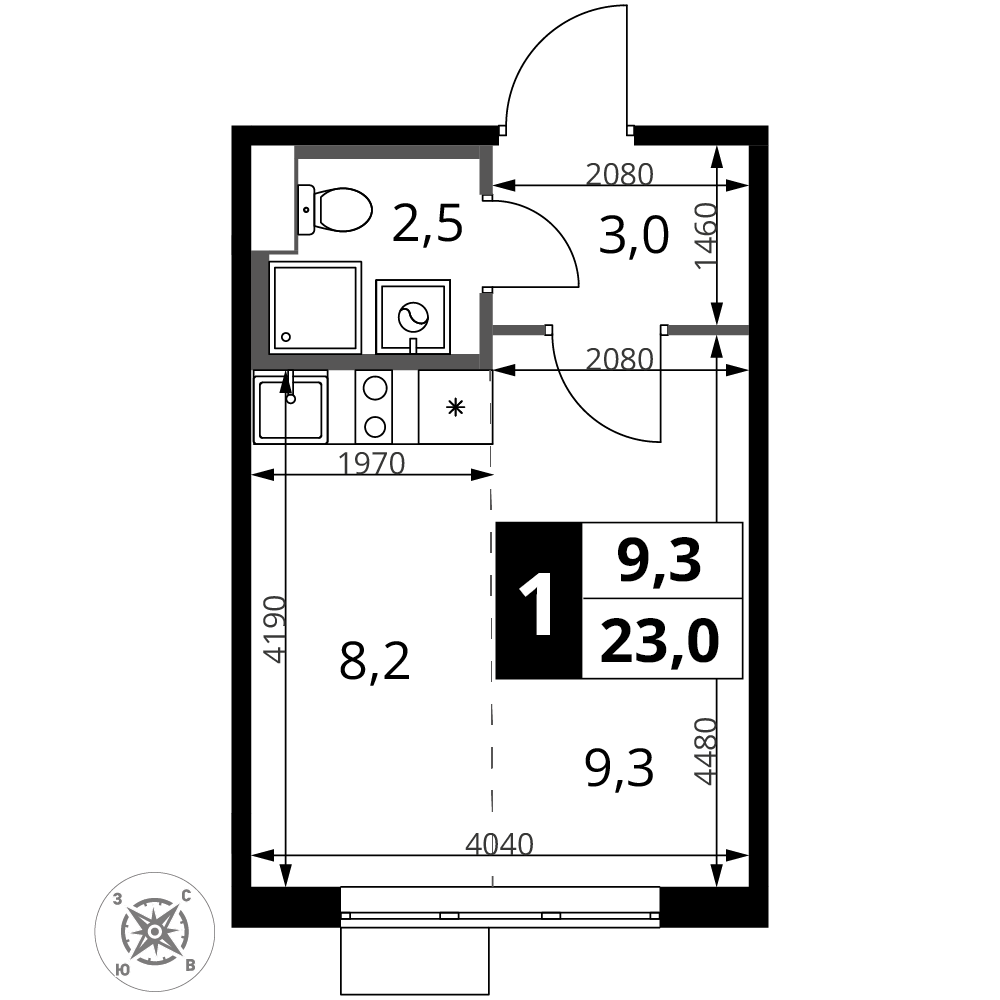 23 м² · 1 комната · 15/16 этаж · Декабрь 2028