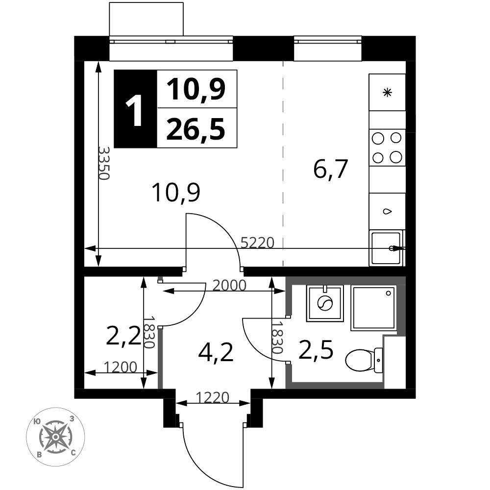 26.5 м² · 1 комната · 13/16 этаж · Декабрь 2028
