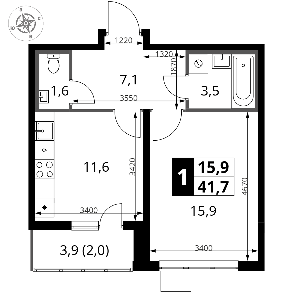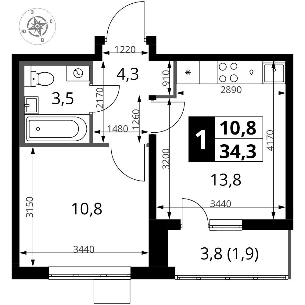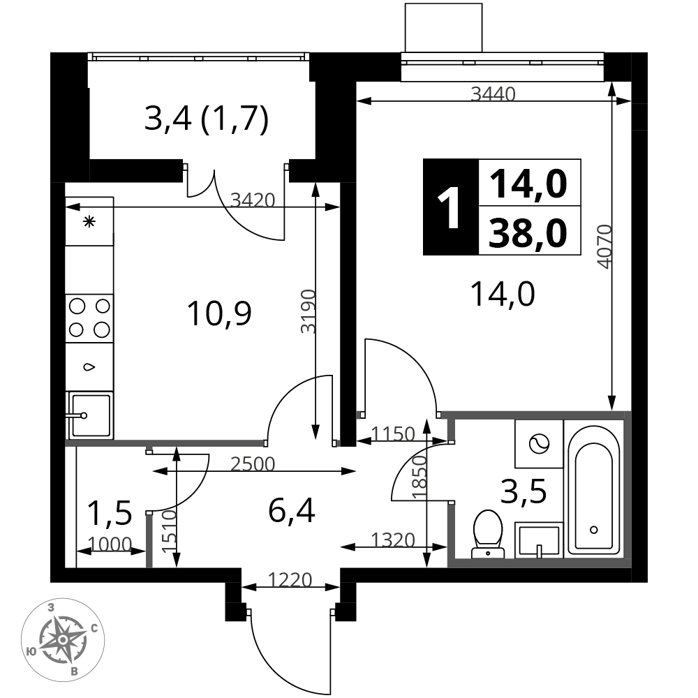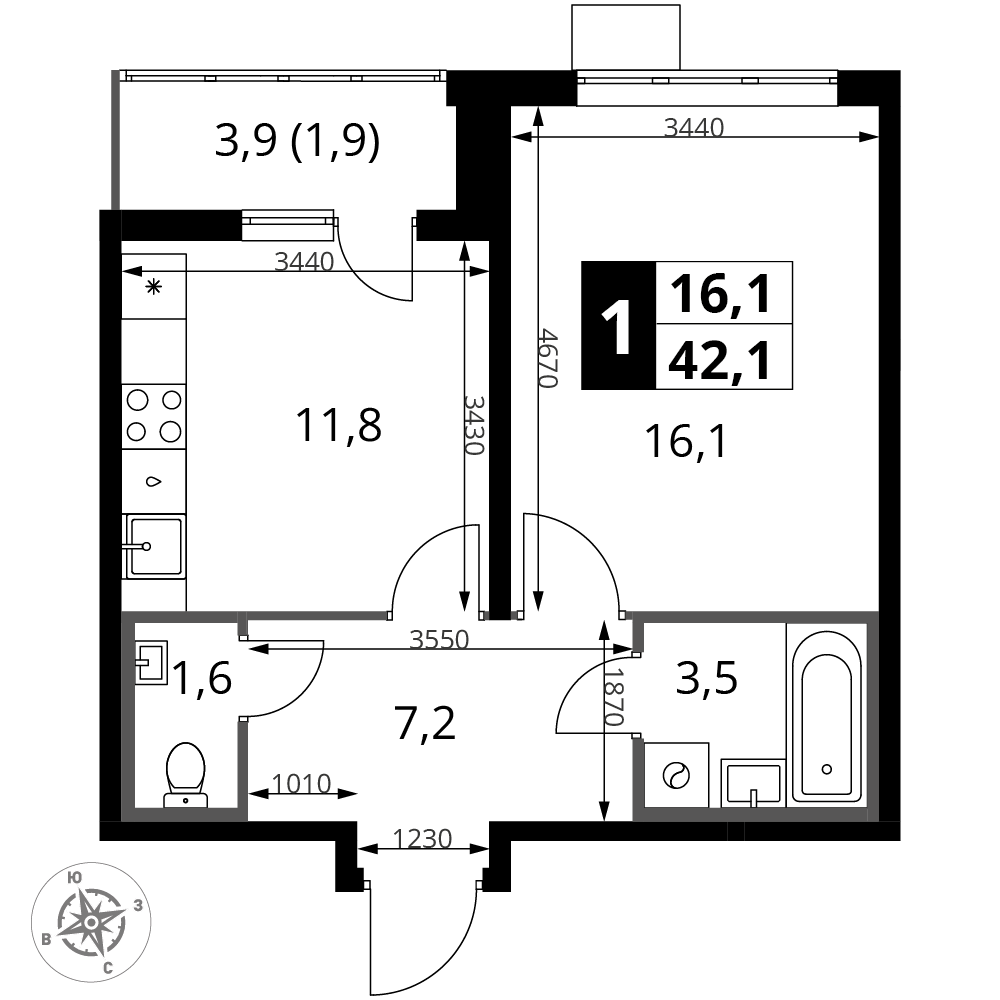 ГлавнаяЖилая недвижимостьЖК "1-й Южный"1-комнатная квартира № 2