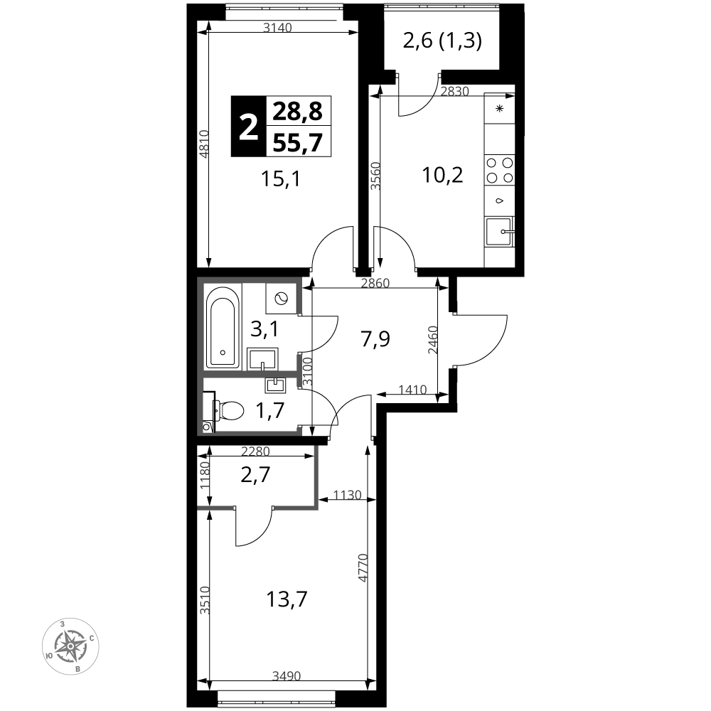 ГлавнаяЖилая недвижимостьЖК "1-й Южный"2-комнатная квартира № 4