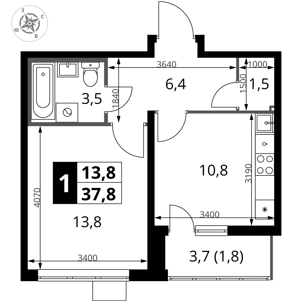 ГлавнаяЖилая недвижимостьЖК "1-й Южный"1-комнатная квартира № 5