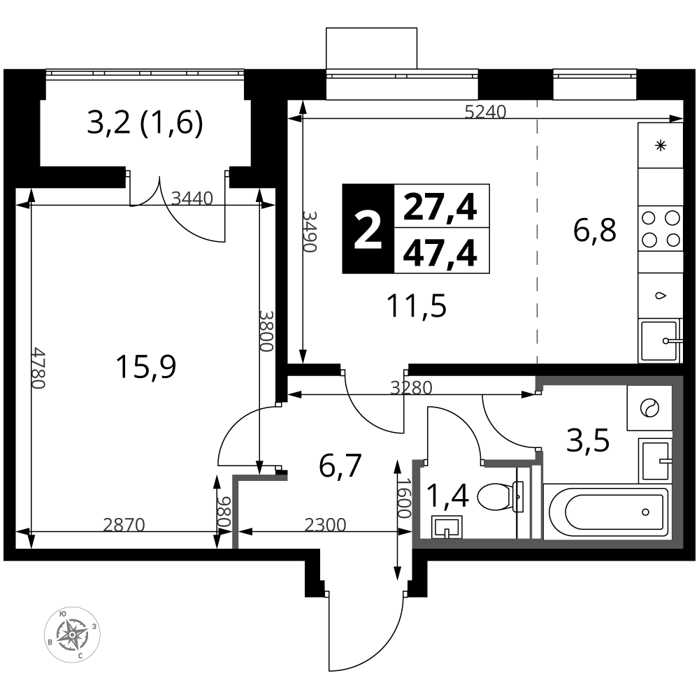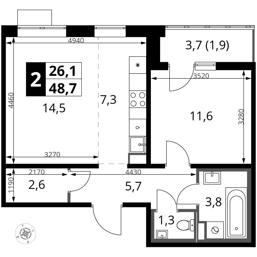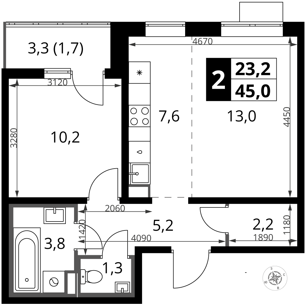 ГлавнаяЖилая недвижимостьЖК "1-й Южный"2-комнатная квартира № 3