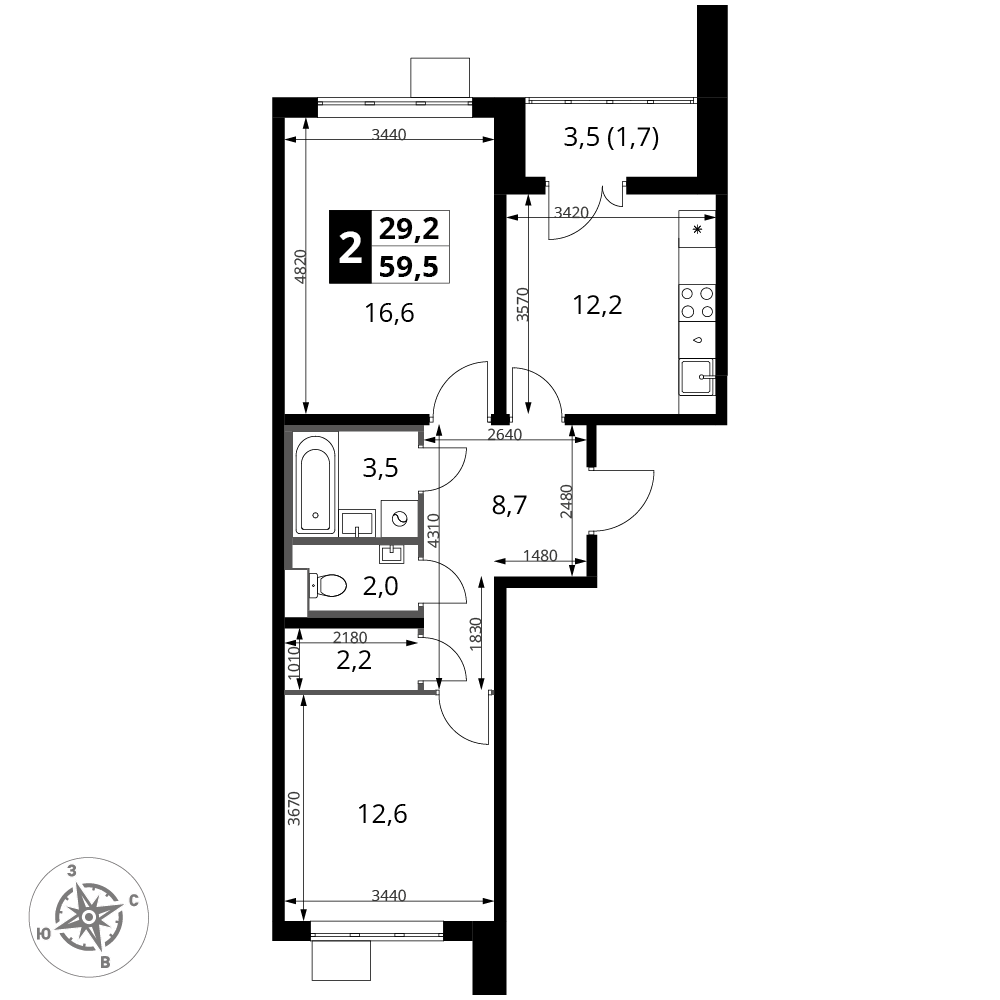 ГлавнаяЖилая недвижимостьЖК "1-й Южный"2-комнатная квартира № 4