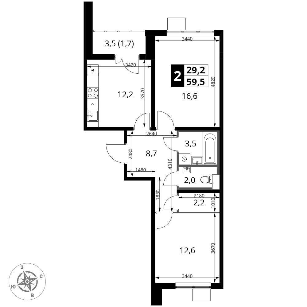 ГлавнаяЖилая недвижимостьЖК "1-й Южный"2-комнатная квартира № 1
