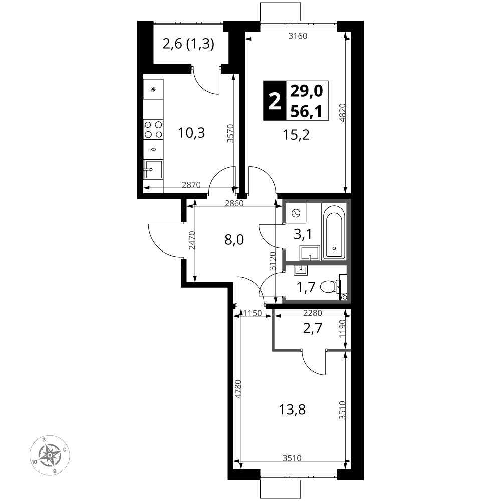 ГлавнаяЖилая недвижимостьЖК "1-й Южный"2-комнатная квартира № 1