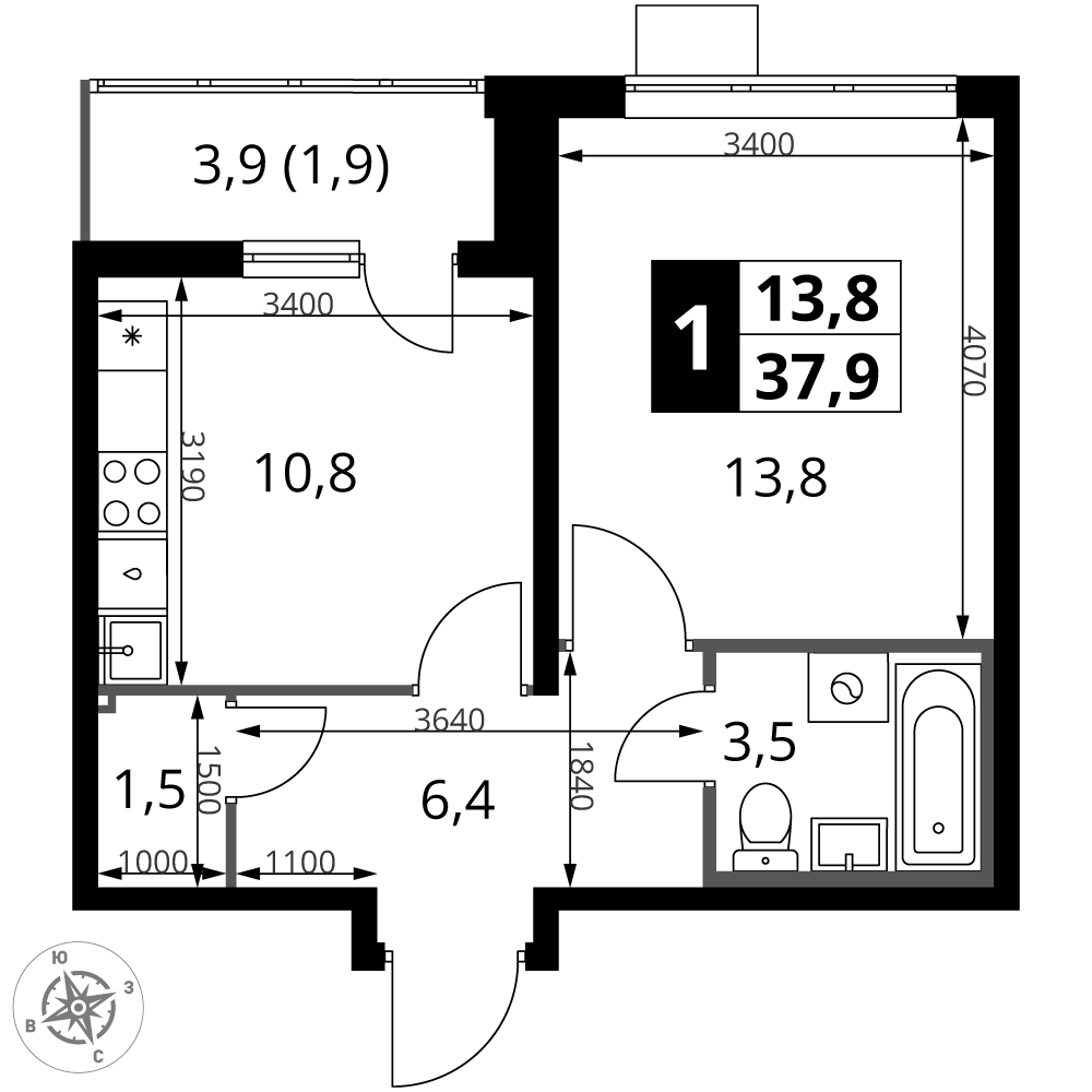 ГлавнаяЖилая недвижимостьЖК «1-й Южный»1-комнатная квартира № 5