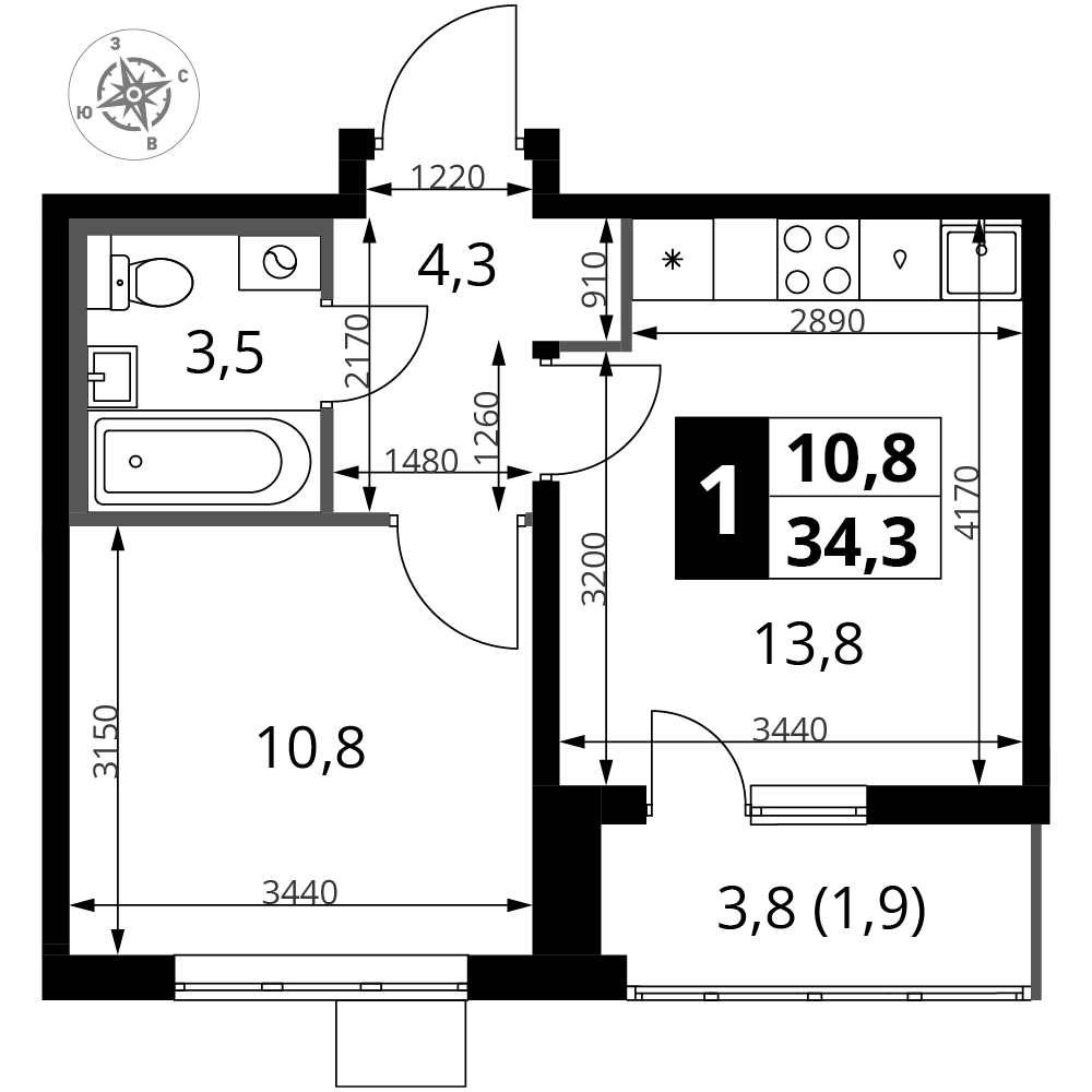 ГлавнаяЖилая недвижимостьЖК «1-й Южный»1-комнатная квартира № 3