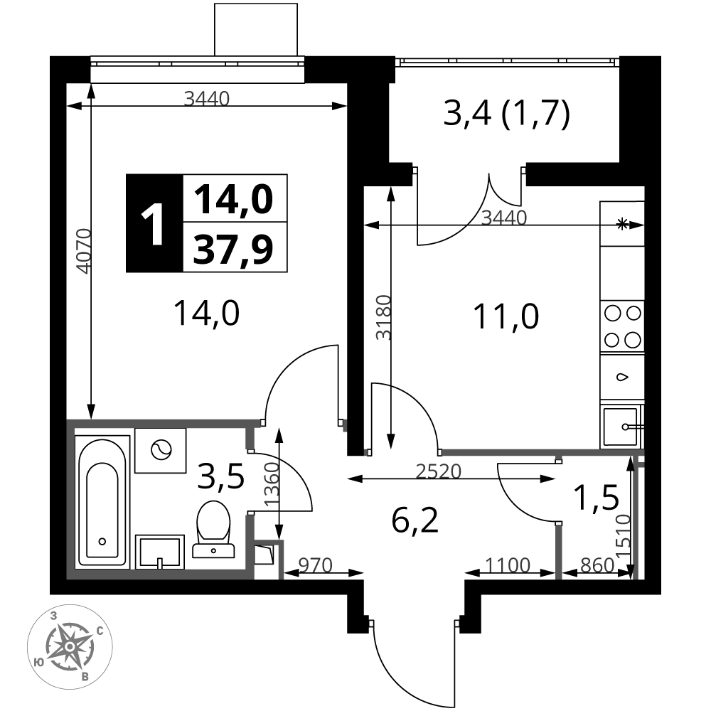 ГлавнаяЖилая недвижимостьЖК «1-й Южный»1-комнатная квартира № 3