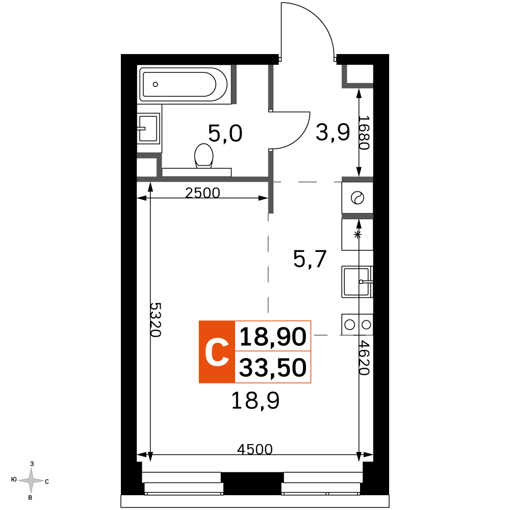 | 5 | Июнь 2028 | 1 | 50 | 2 | 2 | 1 | 33.4 | 33 500 200 | без отделки | ![]() | 2 | ||