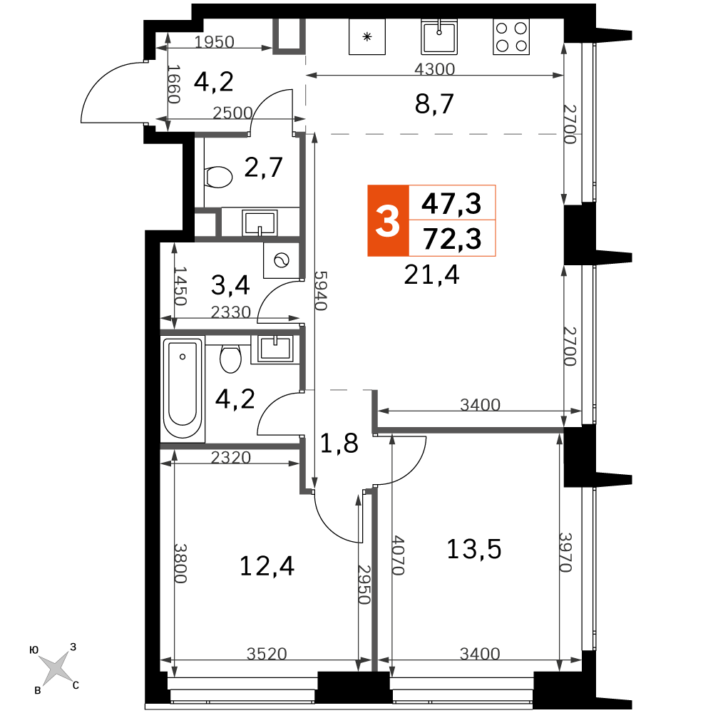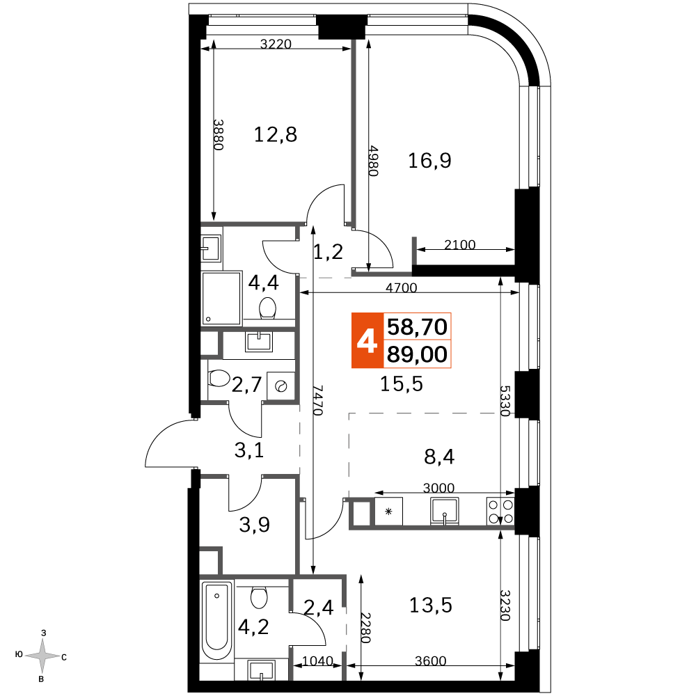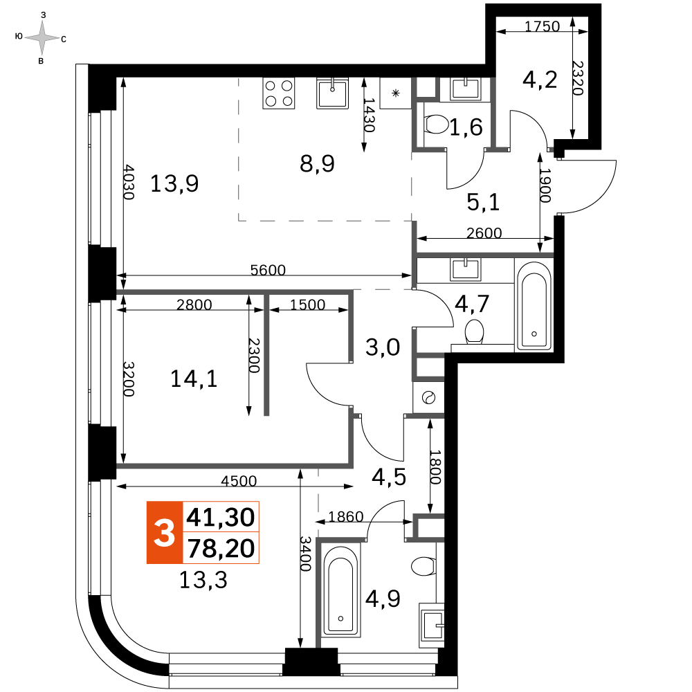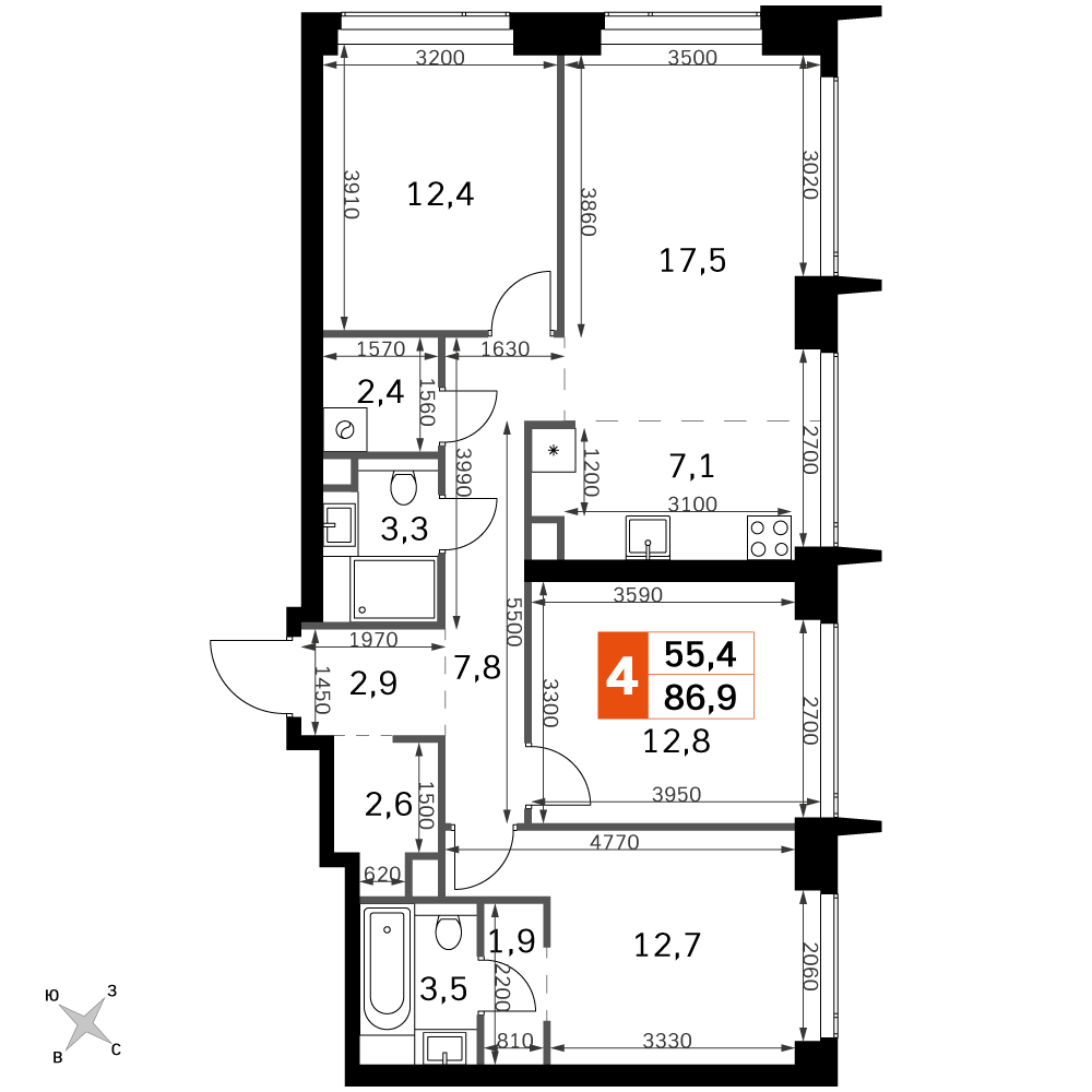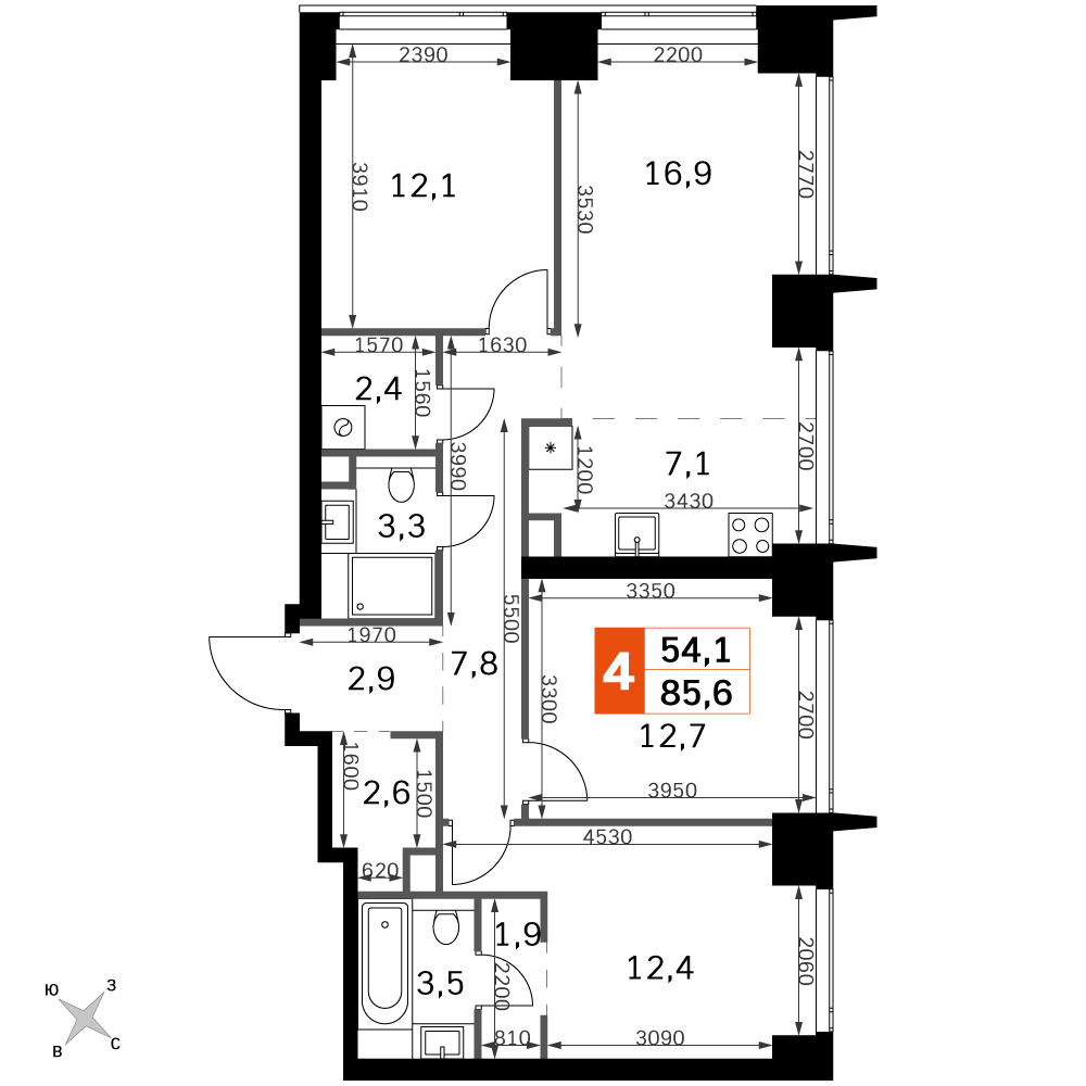 | 5 | Июнь 2028 | 1 | 33 | 13 | 13 | 4 | 86.9 | 72 852 615 | без отделки | 13 | |||